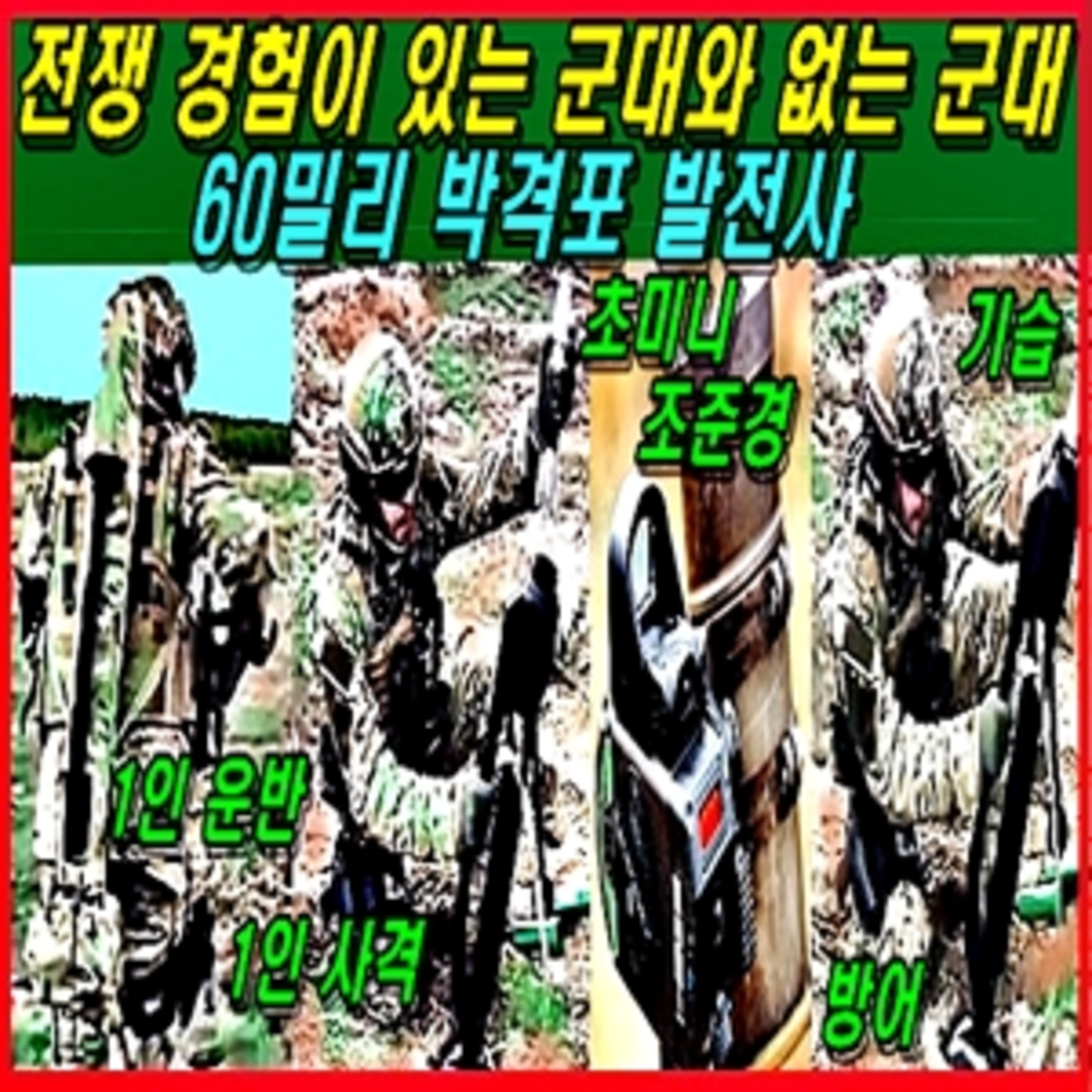 한국군은 60밀리 박격포를 퇴역시키고 있지만 미군은 아프가니스탄 전쟁 교훈으로 60밀리 박격포를 발전시켜 1인 휴대용 박겨포를 개발 사용하고 있는데, 분대화력이 전혀 없는 한국군은 분대화력이 있는 북한군에게 압도당한다는 의견에 지원화력이 빵빵해서 괜찮다는 의견이 지배적이지만, 그것은 지원을 요청하고 지원이 당도하는 사이에 승패가 결정된다는 사실을 전쟁 경험이 없는 사람들이 몰라서 하는 이야기로서 그 사례를 들어 설명해 드립니다.