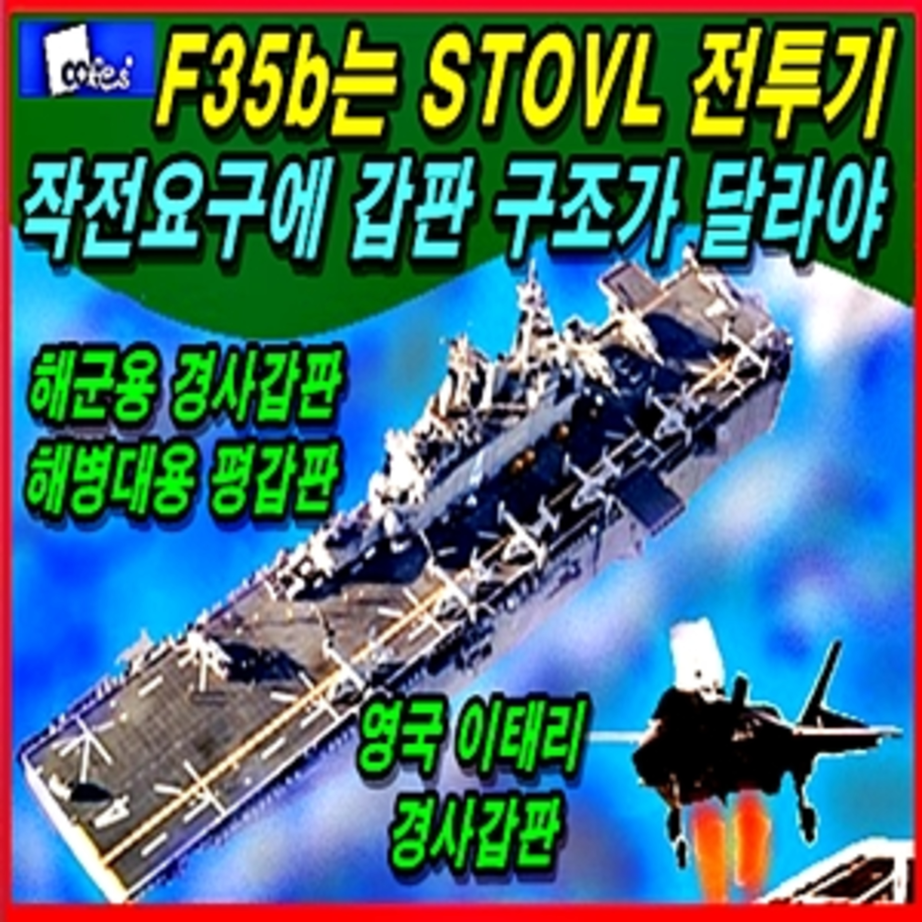 F35b는 단거리 이륙 수직착륙(STOVL) 스텔스 전투기라, 해병대 작전 전용이면 강습상륙함의 수평갑판도 되지만, 해군 작전 전용이면 반드시 스키 점프대를 설치해야만 하는데, 영국의 항모를 보시면 왜 그런지 이해가 되실 것인데, 한국 경항모는 해군의 소요제기가 아니라 정치권 강압에 의한 건조라 개념이 없어 평갑판으로 가는 것이라 대양작전에서 큰문제가 발생할 것 입니다.