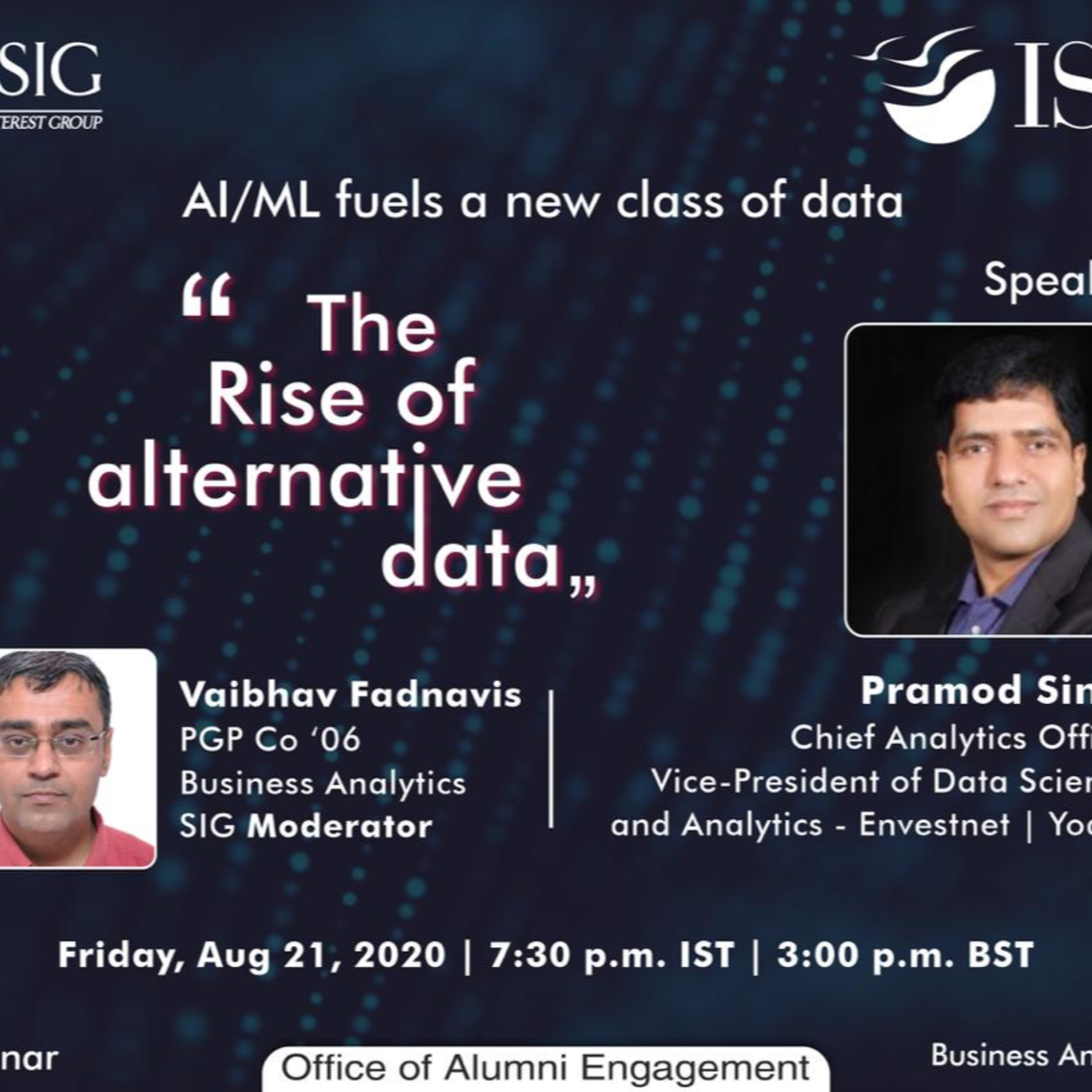 That’s why we bring you Pramod Singh, Chief Analytics Officer, Vice-President Data Sciences and Analytics - Yodlee and Vaibhav Fadnavis, PGP Co'06, Director - Advanced Analytics (AI & Machine Learning) - Microsoft on a session on ‘How to Deepen Your Insights - The Rise of Alternative Data’.