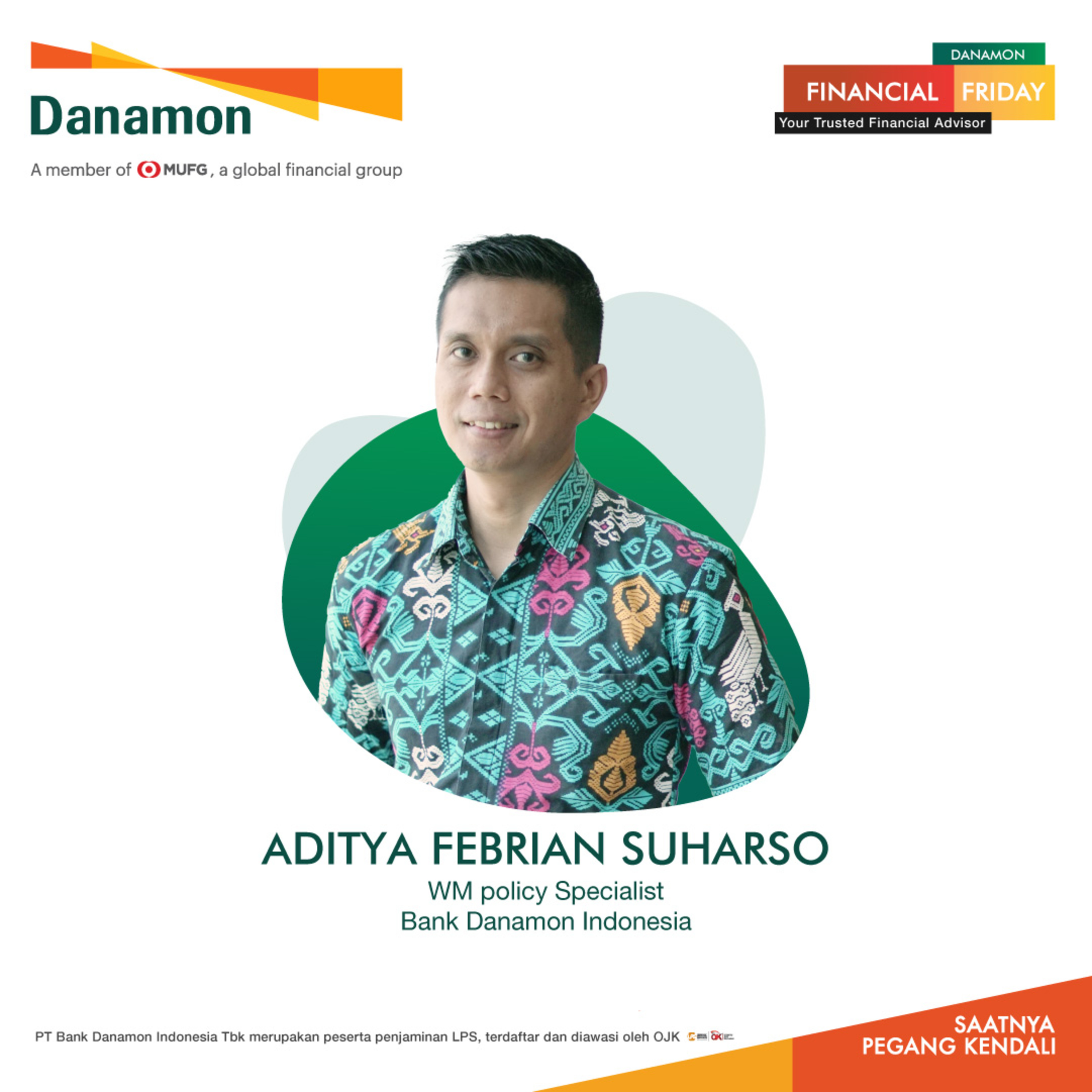 Cari tahu selengkapnya dalam Danamon Financial Friday kali ini bersama Aditya Febrian Suharso, Wealth Management Policy Specialist Bank Danamon.