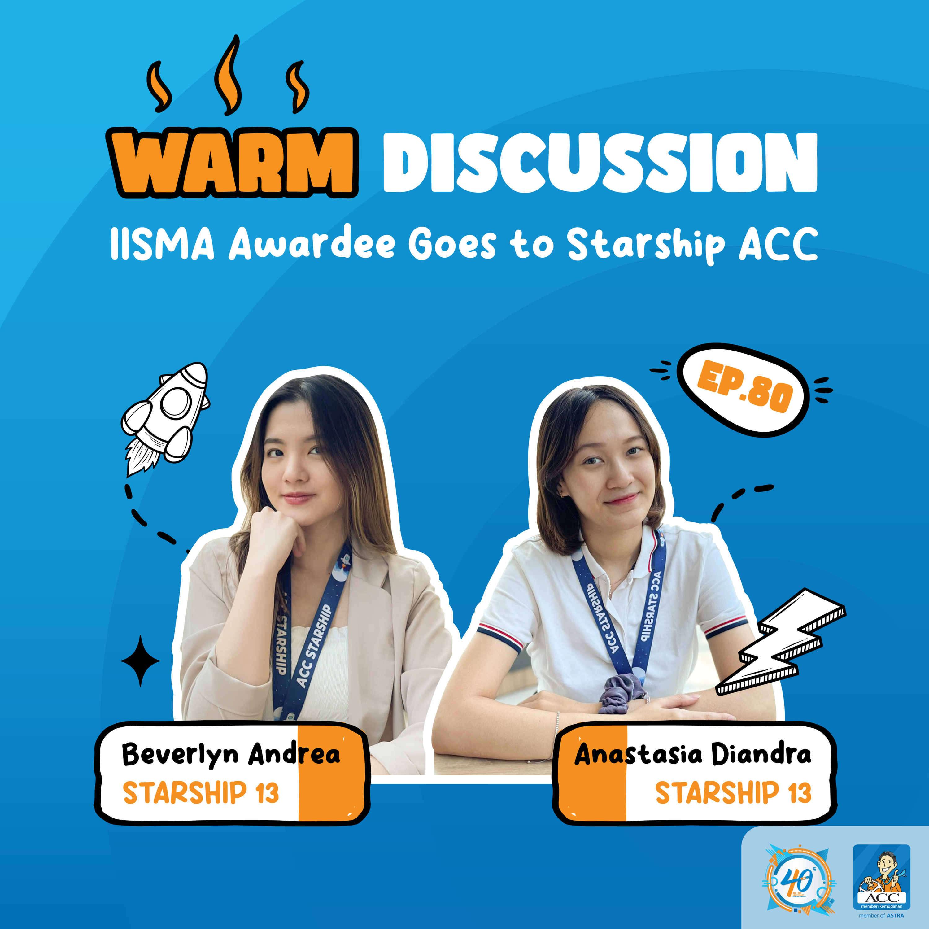 Episode DOBRAK! Podcast kali ini hadir dari Starship Batch 13, Anastasia Diandra dan Beverlyn Andrea, sebagai IISMA Awardee yang tertarik untuk mengikuti program Starship di ACC dengan bahasan menarik seputar hal-hal yang terjadi selama IISMA dan perbedaan yang dirasakan ketika mengikuti pertukaran pelajar ke luar negeri dan magang di perusahaan🚀
