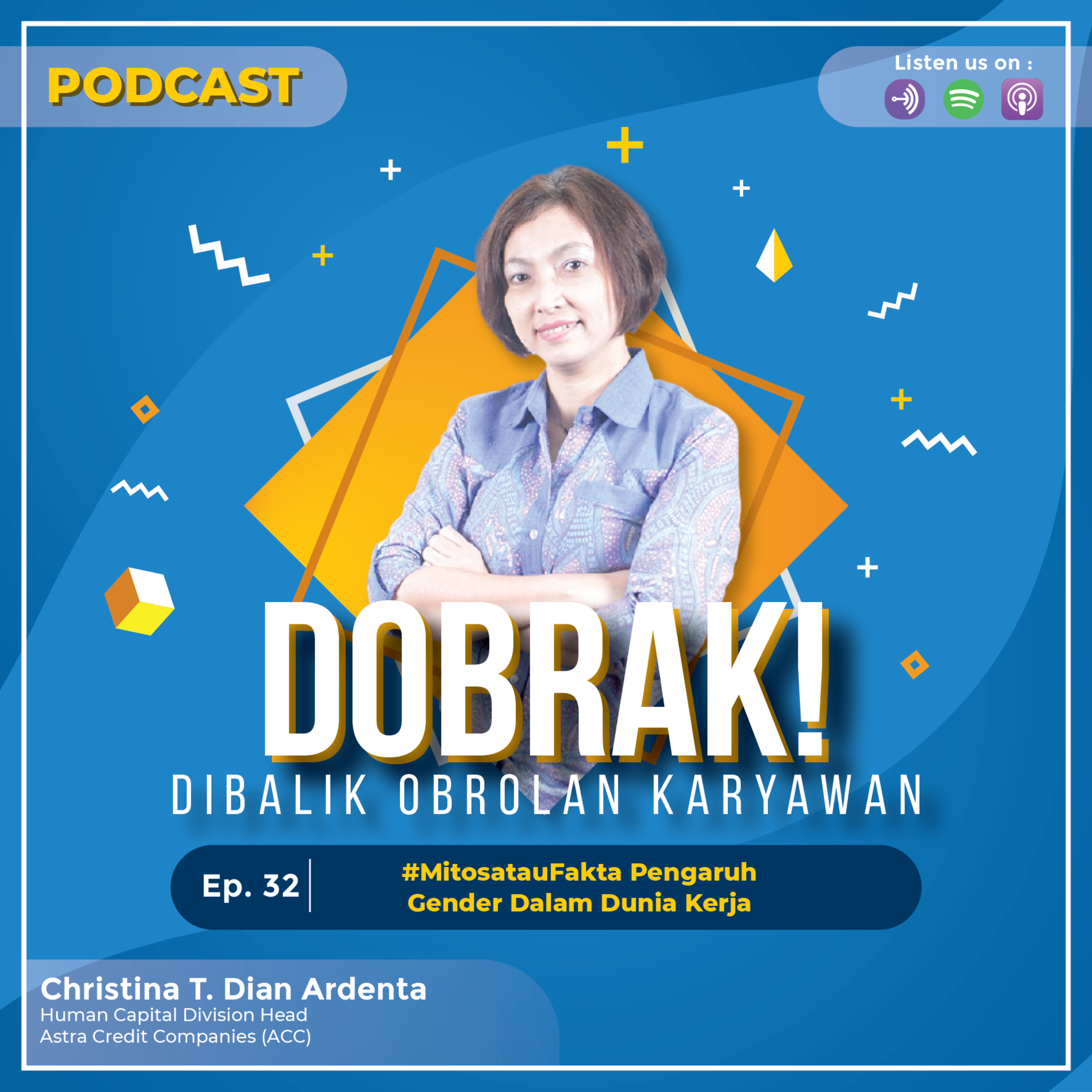 Bersama @christdian, episode DOBRAK! Podcast kali ini membahas MITOS atau FAKTA bahwa perbedaan gender masih diperhitungkan dalam dunia kerja khususnya di Astra Credit Companies (ACC).