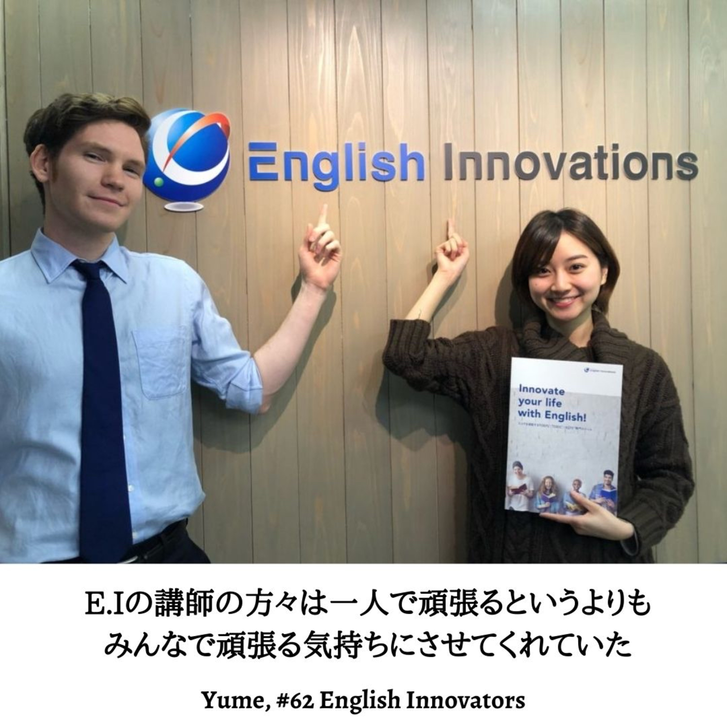 62人目のEnglish Innovators として、Yumeさんをお迎えしています。Yumeさんは、イングリッシュイノベーションズ新宿校のTOEICのクラスに約3週間通われ、TOEIC 680点を獲得されました。その後、E.Iのスタッフとして働かれ、現在は社会人としてその経験を活かして働かれているYumeさん。