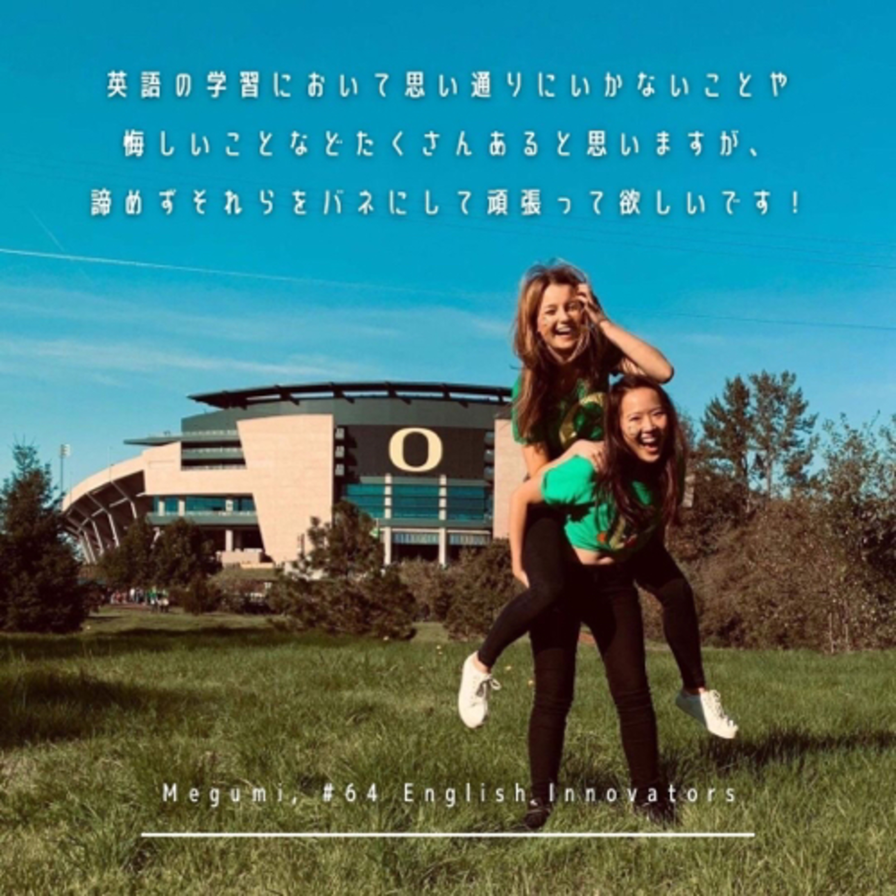ゲストとして前回に引き続きMegumiさんをお迎えしています。Megumiさんは、イングリッシュイノベーションズ新宿校のTOEFLのクラスに約3カ月間通われ、TOEFL iBT 75点を獲得されました。 その後、アメリカ オレゴン州のオレゴン大学へ交換留学をされています。
