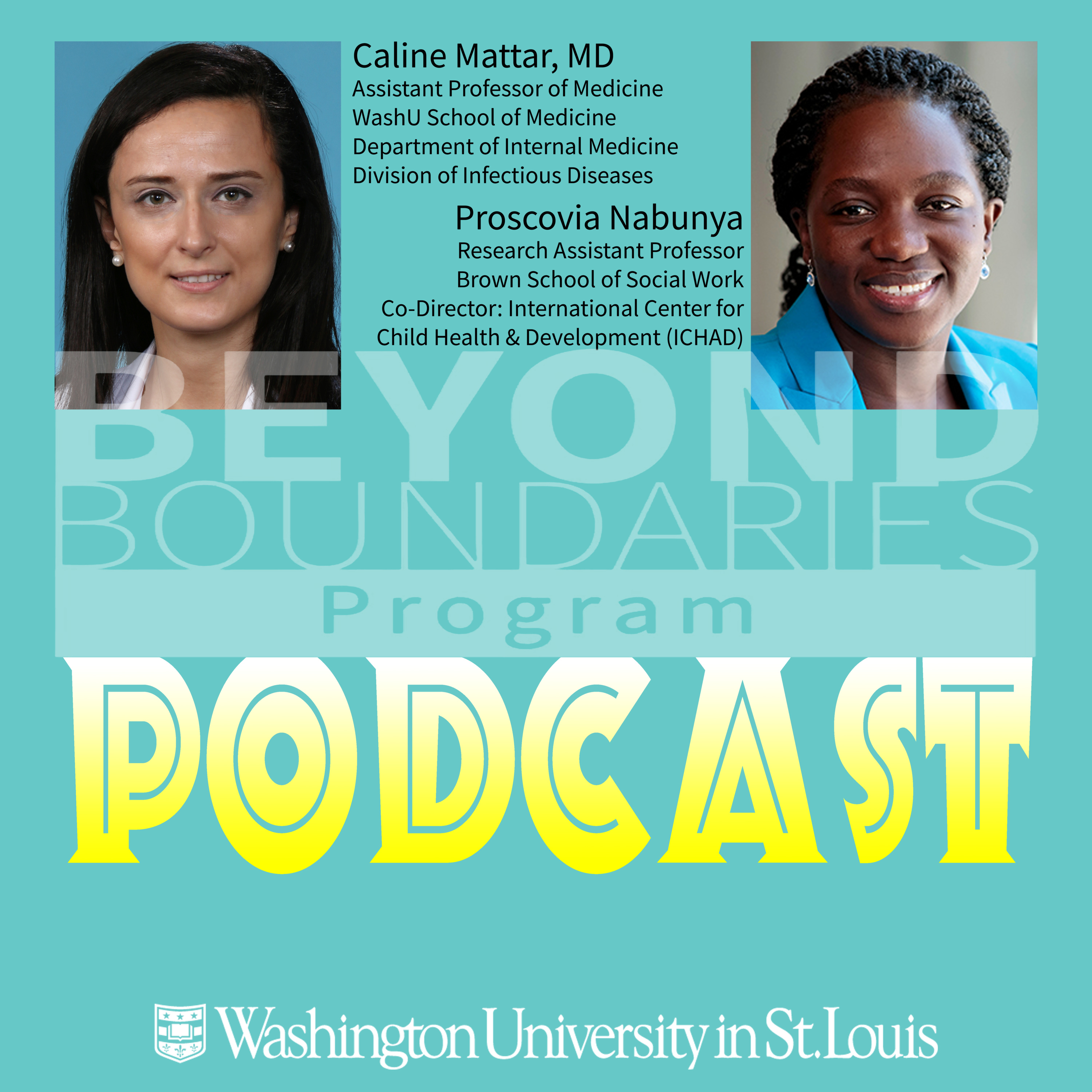 On this episode of the Beyond Boundaries Podcast, Rob talks with Dr. Caline Mattar of the Washington University School of Medicine Department of Internal Medicine in the Division of Infectious Diseases and Professor Proscovia Nabunya from the Brown School of Social Work and co-director of the International Center for Child Health & Development (ICHAD) about their Spring 2021 course offering of the popular Beyond Boundaries course called Gender, Youth, & Global Health. Together, they discuss the international journey both professors have taken to be at WashU, how they have continued their work during the COVID-19 pandemic, and their recommendations for 1st Year students on how to self-care during this uncertain time. Listen and subscribe!