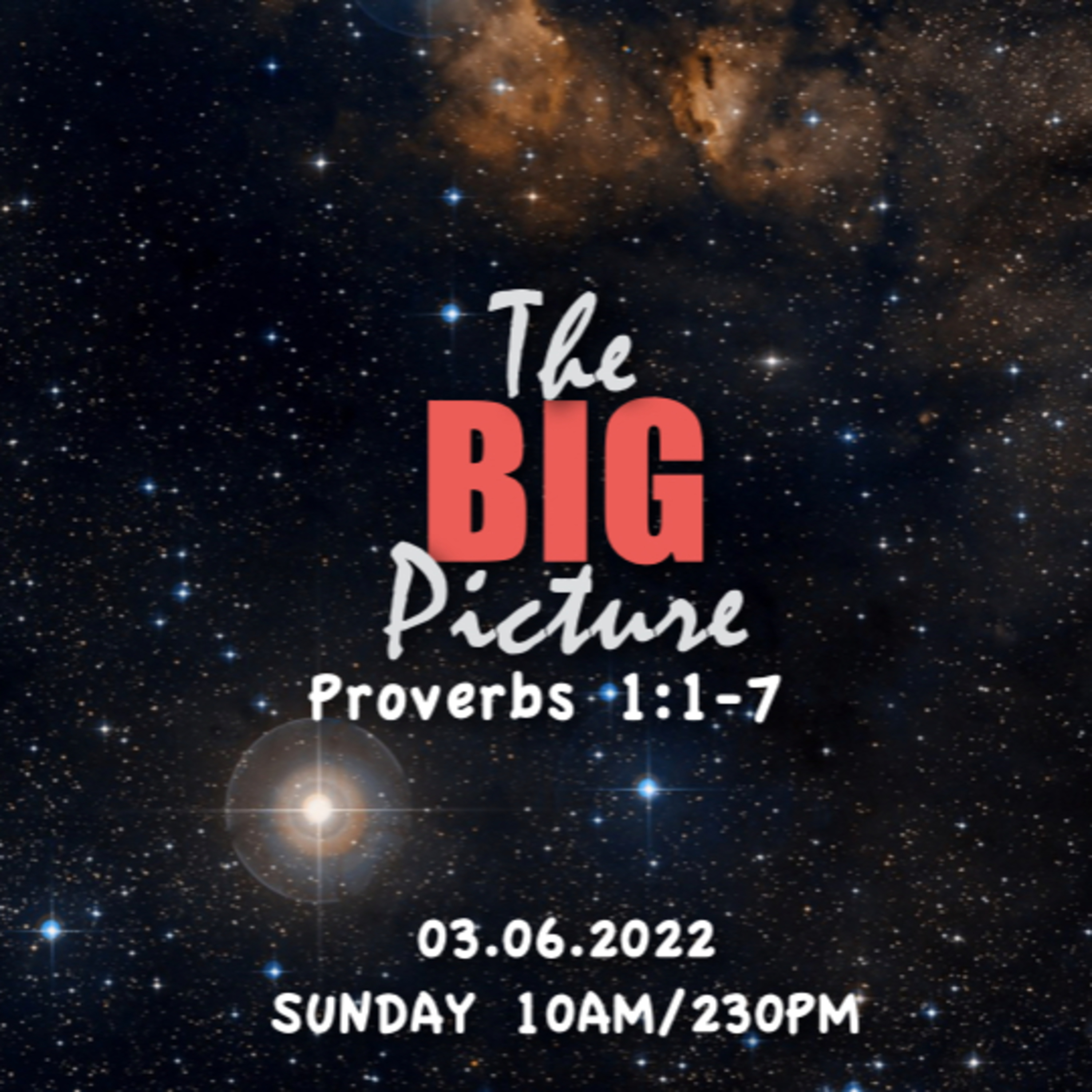 Join us today as we learn and find out what the book of Proverbs has to say about it with our Service with the title: THE BIG PICTURE.