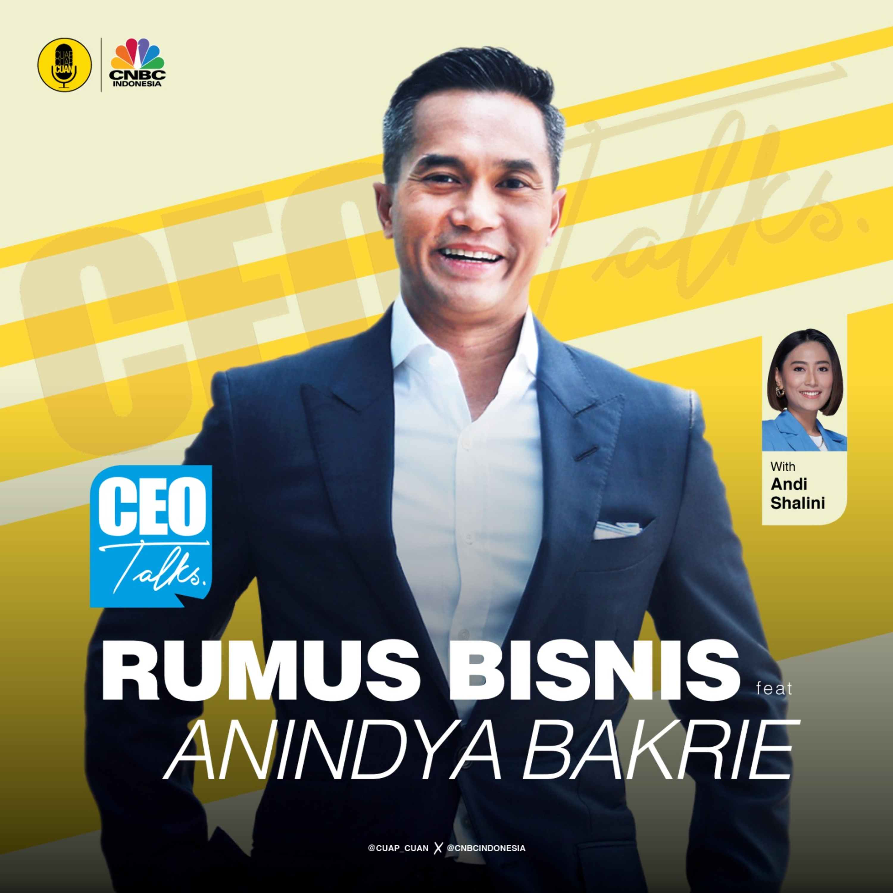Mempersiapkan, membangun hingga mempertahankan bisnis, tentu aja bukan hal yang mudah.. Komitmen dan kerja keras pasti diperlukan dalam mengembangkan bisnis yang akan dimulai ataupun telah dimiliki... Nah, di segmen CEO Talk kali ini, Cuap Cuap Cuan kedatangan CEO PT Bakrie & Brothers, sekaligus putra mahkota generasi ketiga dari Bakrie Group, Anindya Bakrie, yang bakal berbagi pegalamannya dalam mempertahankan dan membangun gurita bisnis yang dimilikinya.. Seperti apa ya strategi yang dilakukan dalam membangun bisnisnya? Dan bagaimana transformasi serta inovasi yang dilakukan? Yuk simak obrolan lengkapnya...