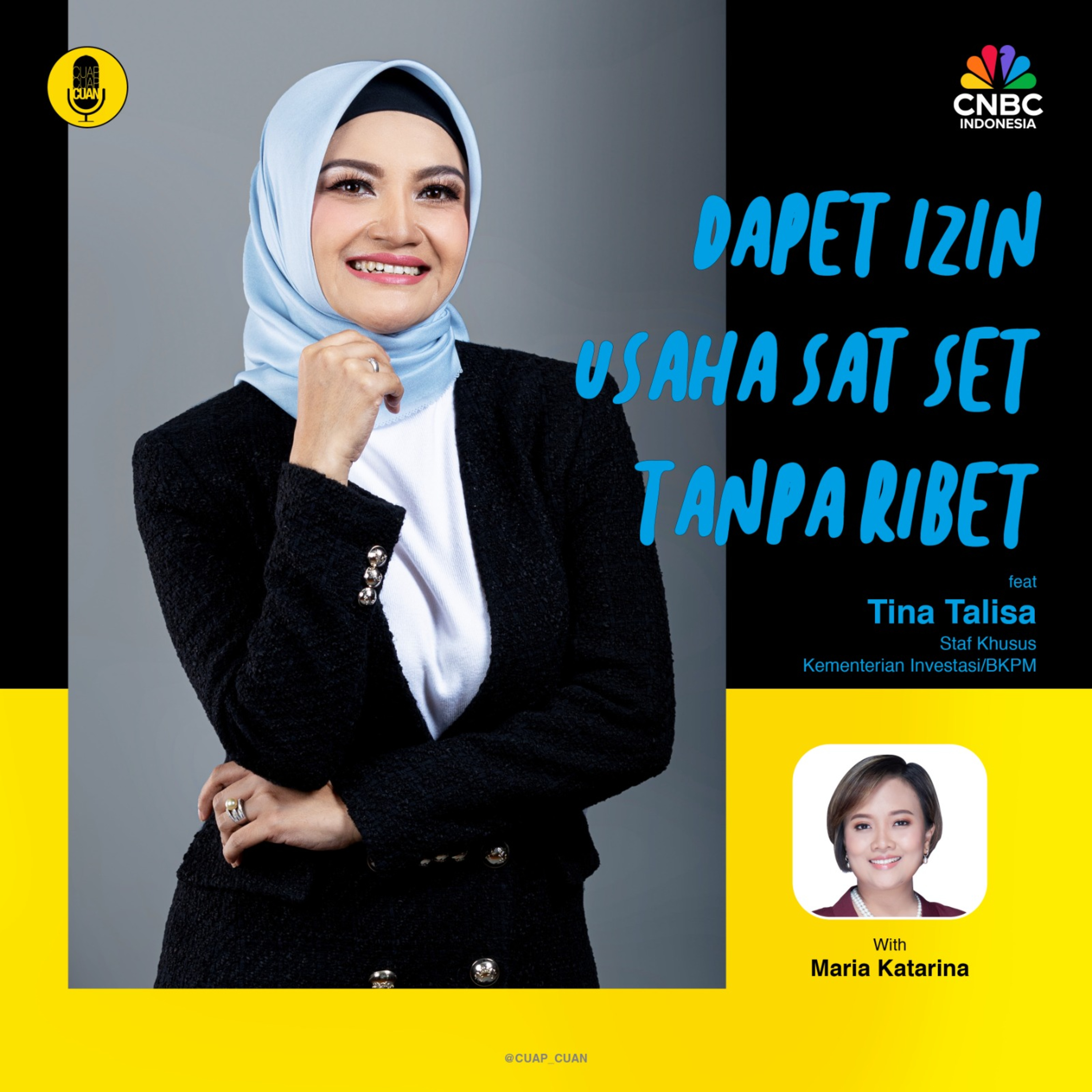 Cuap Cuap Cuan menghadirkan Teh Tina Talisa, Staf Khusus Kementerian Investasi/BKPM, bersama Maria Katarina, untuk memberikan pencerahan tentang sistem OSS ini. Jangan sampai ketinggalan, ya! Enjoy!