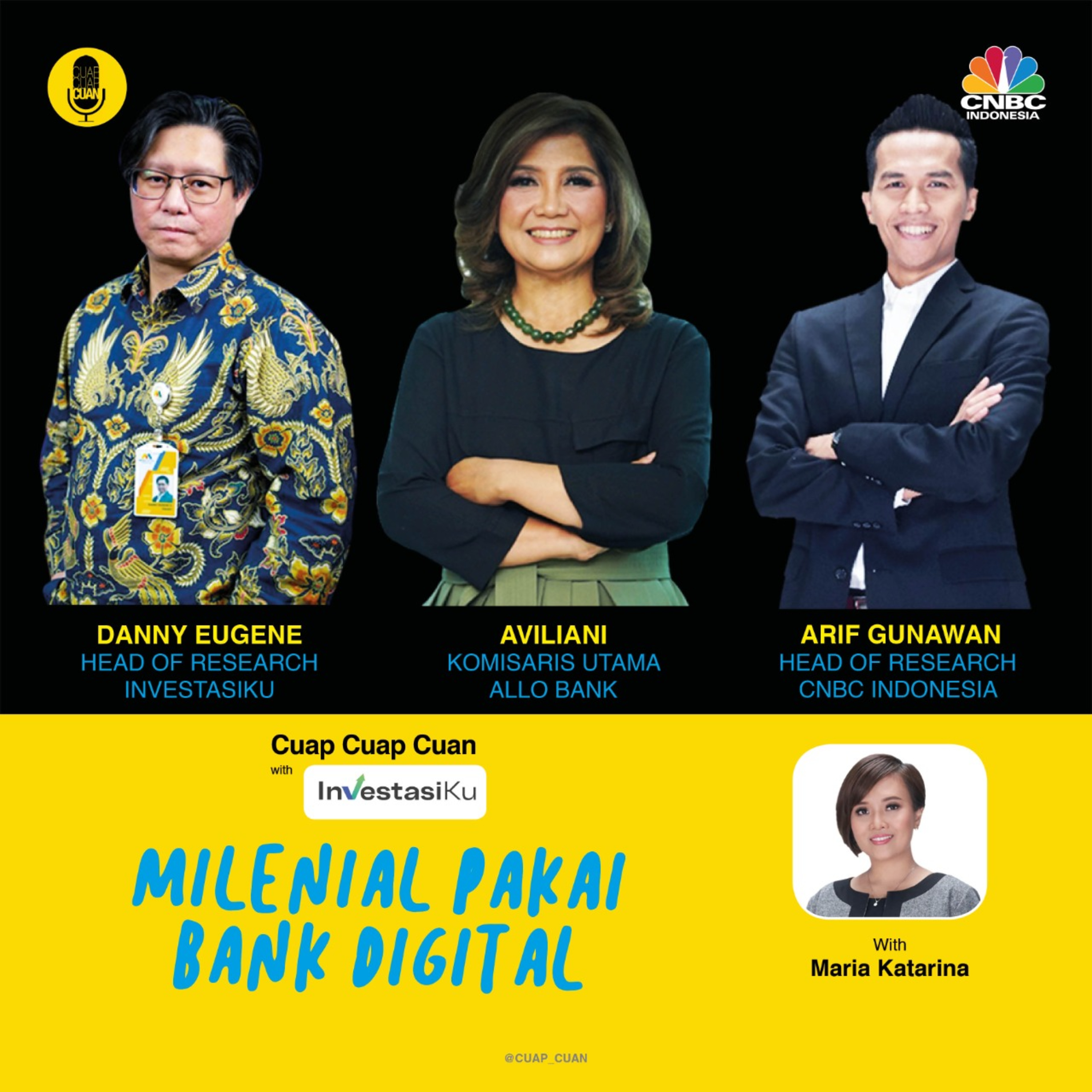 Segmen Interview kali ini, Cuap Cuap Cuan hadir berbeda dengan Cuap Cuap Cuan On Location, langsung dari Allo Bank Festival 2022. Cuap Cuap Cuan kali ini akan mengupas tuntas mengenai berbagai keunggulan dan kelebihan bank digital dalam layanan industri perbankan modern, yang tentunya sangat dibutuhkan oleh para milenial. Lantas, bagaimana peran dari InvestasiKu dan Allo Bank dalam menjawab kebutuhan para milenial tersebut? Simak langsung aja yuk, obrolan seru Maria Katarina bersama dengan Aviliani selaku Komisaris Utama PT Allo Bank Indonesia Tbk, Danny Eugene selaku Head of Research InvestasiKu dan Arif Gunawan selaku Head of Research CNBC Indonesia, berikut ini.. Enjoy!
