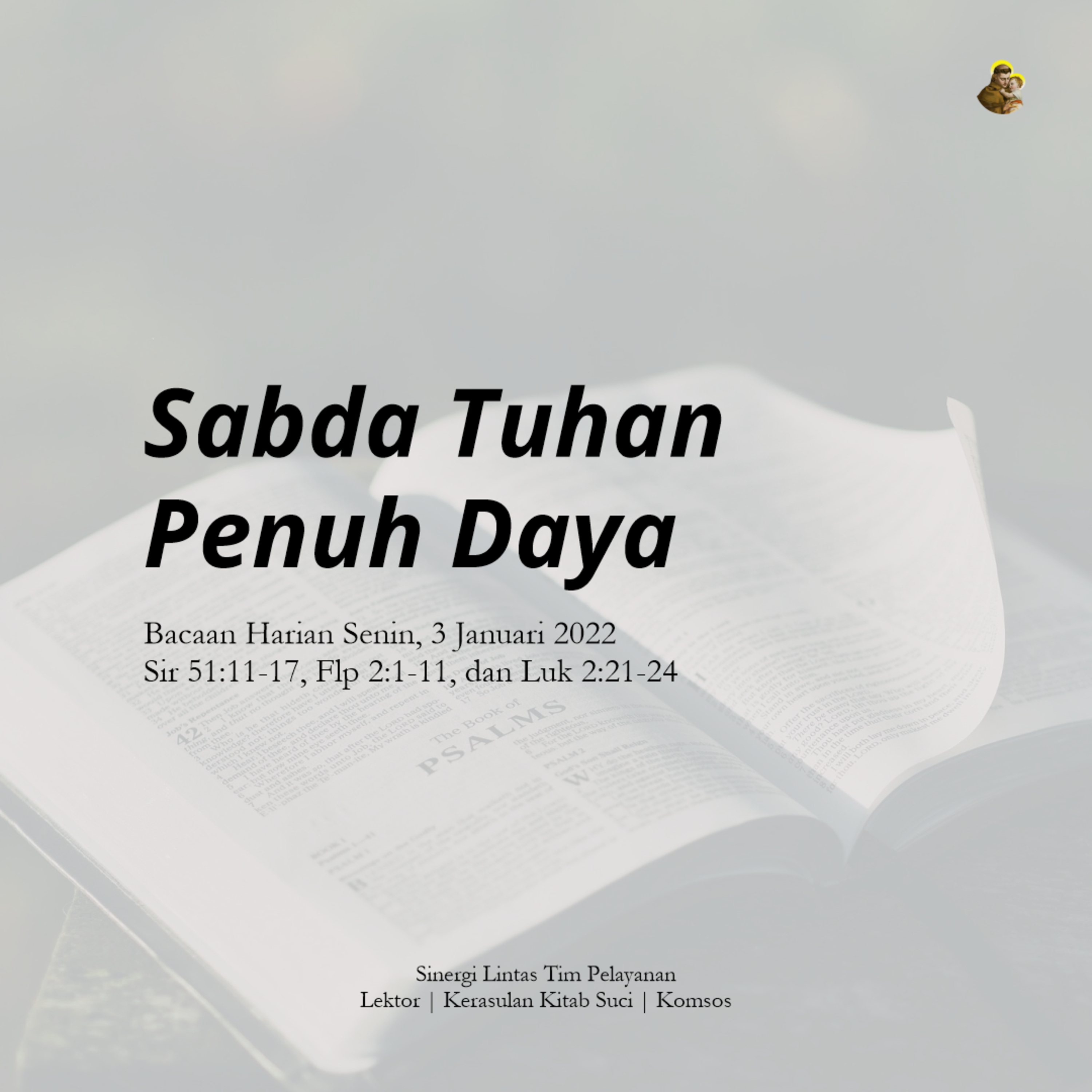 Senin Masa Natal (Hari Raya Nama Yesus Yang Tersuci, Bacaan I: Sir 51:11-17, Bacaan II: Flp 2:1-11, Bacaan Injil: Luk 2:21-24)
