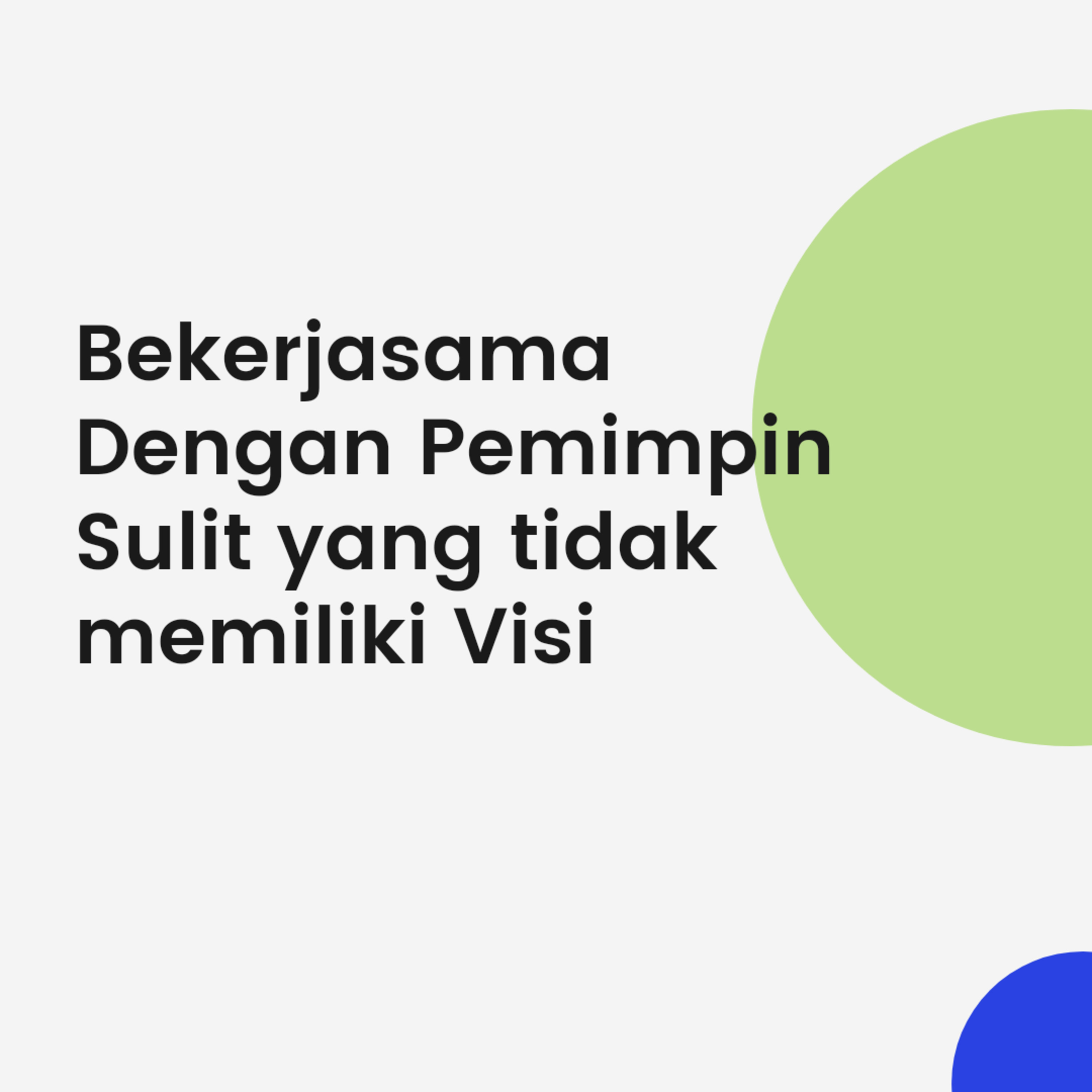Sebenarnya ketidakpuasan & keputusan-asaan muncul dari ketiadaan visi. Tanpanya pemimpin tidak mampu menyalurkan motivasi, dorongan dan tujuan kepada pengikutnya. Jika kita akan bertahan di bawah pemimpin yang tidak bervisi lakukan ini: Berpeganglah pada visi yang lebih besar dari perusahaan, Tetapkan Visi Perusahaan & Bagikan Itu dengan Pemimpin Kita, Bangunlah Kesadaran akan Tujuan dalam Diri Anda.