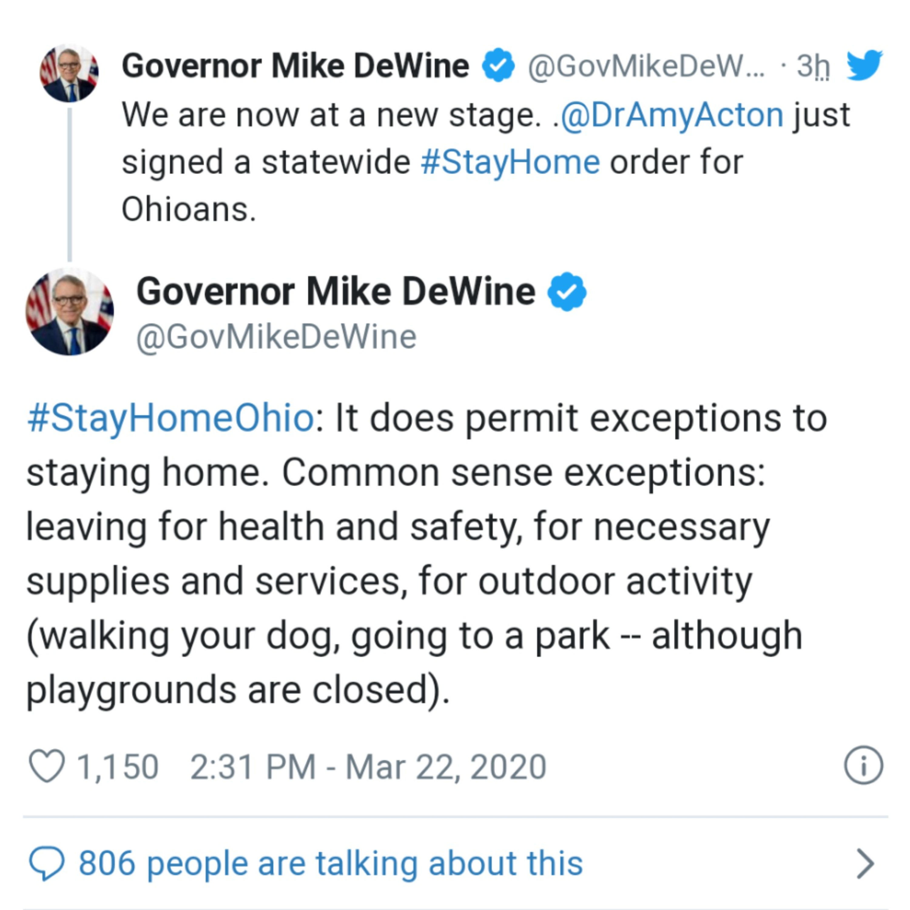 DeWine announced the order in a press conference and on his official Twitter account.