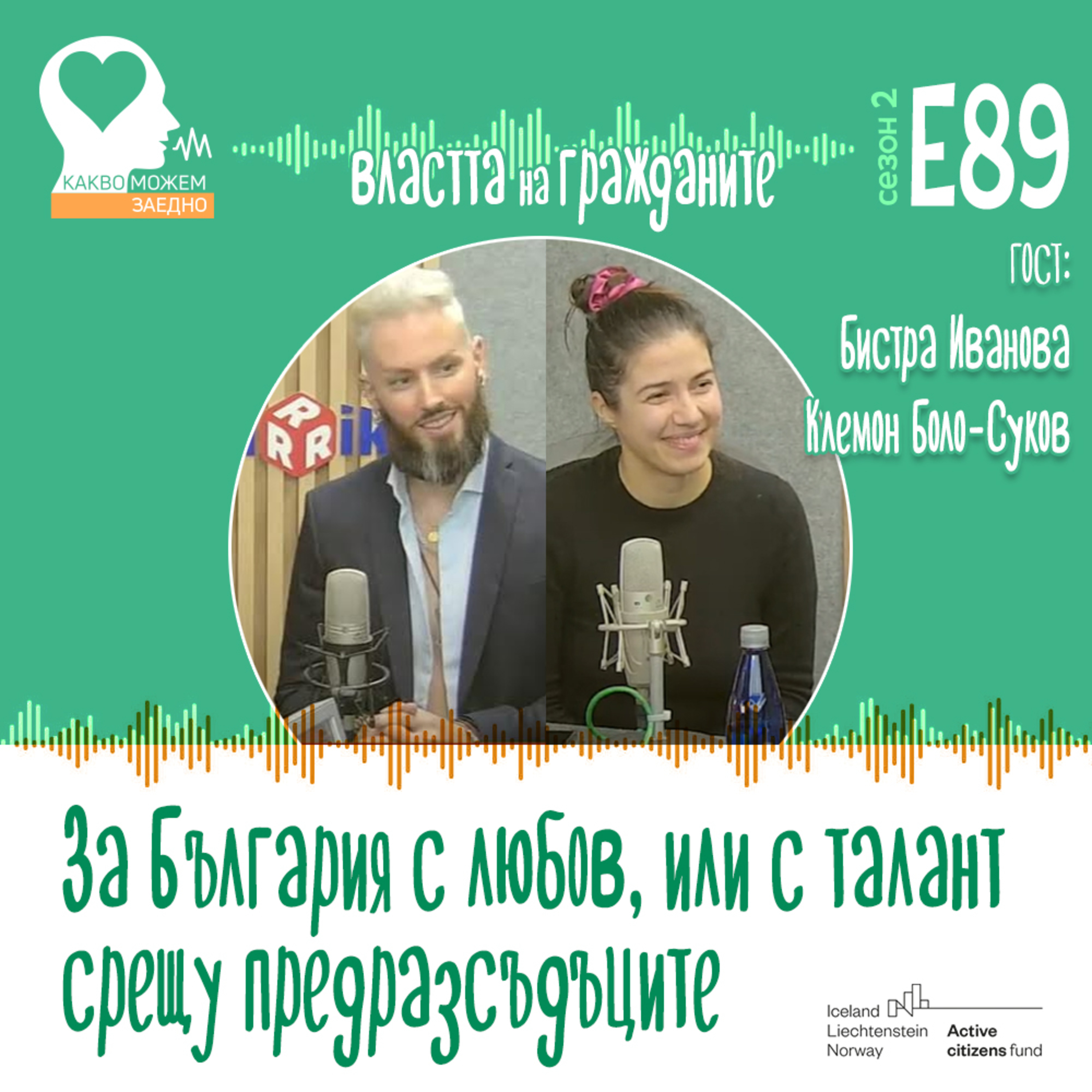 Този подкаст се реализира в рамките на проект „Какво можем заедно“, финансиран от Фонд Активни граждани България по финансовия механизъм на Европейското икономическо пространство. Цялата отговорност за съдържанието на публикуваните епизоди се носи от Фондация Дарик и Фондация „Четиридесет и две“ и при никакви обстоятелства не може да се приема, че те отразяват официалното становище на Финансовия механизъм на Европейското икономическо пространство и Оператора на Фонд Активни граждани България. www.activecitizensfund.bg
