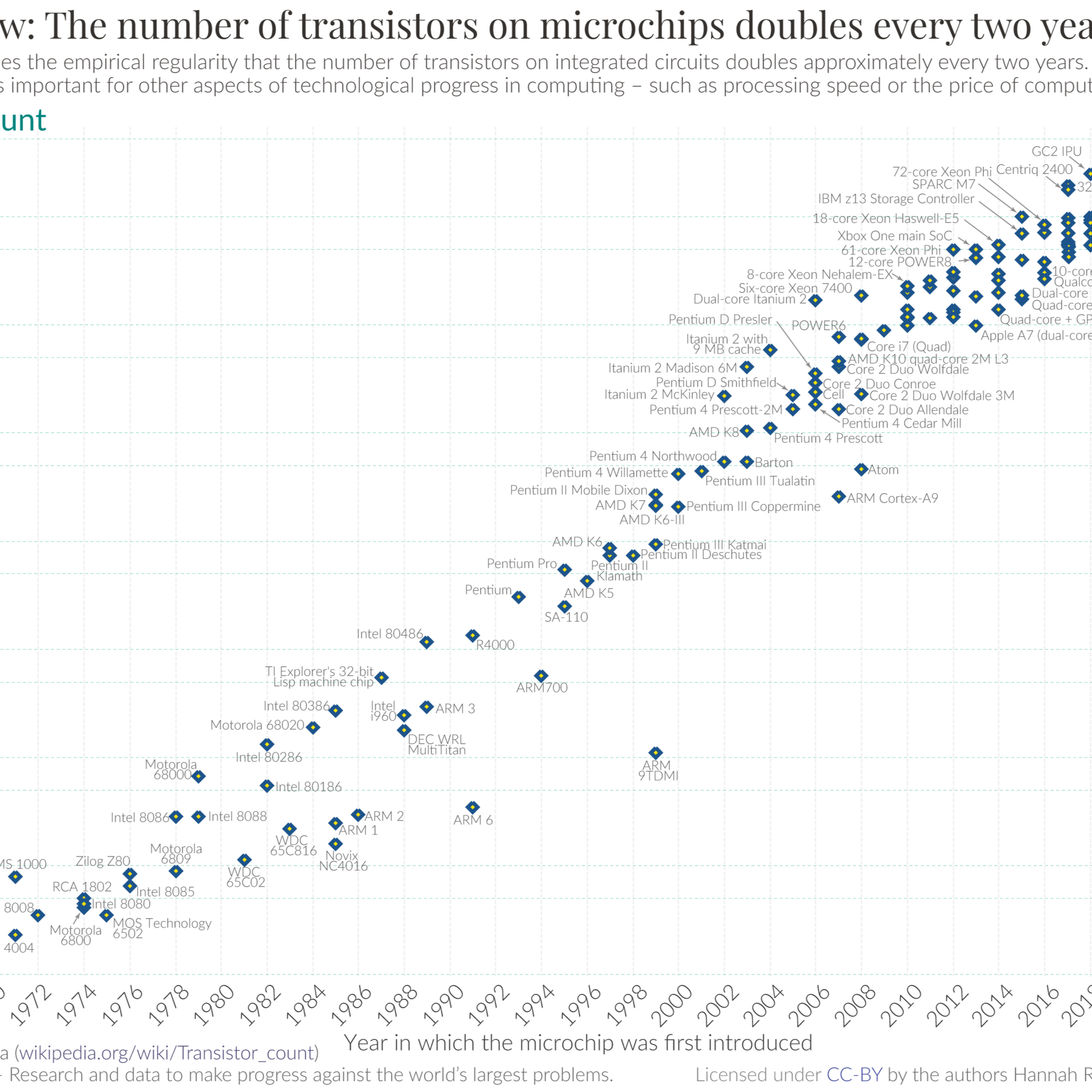 Moore's Law: "the observation that the number of transistors in a dense integrated circuit (IC) doubles about every two years. Moore's law is an observation and projection of a historical trend."