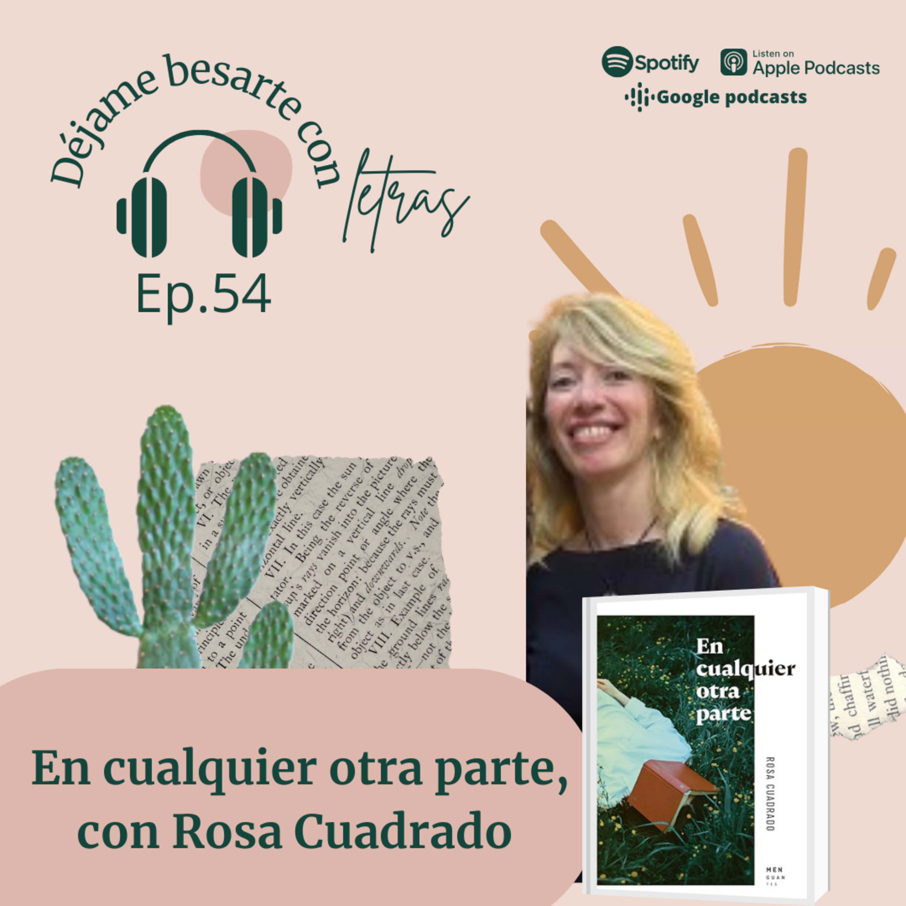 ¡Hola! Bienvenid@ al podcast literario Déjame besarte con letras. En este encuentro con la literatura y la creatividad tengo el placer de charlar con la escritora y poeta Rosa Cuadrado sobre su libro En cualquier otra parte.