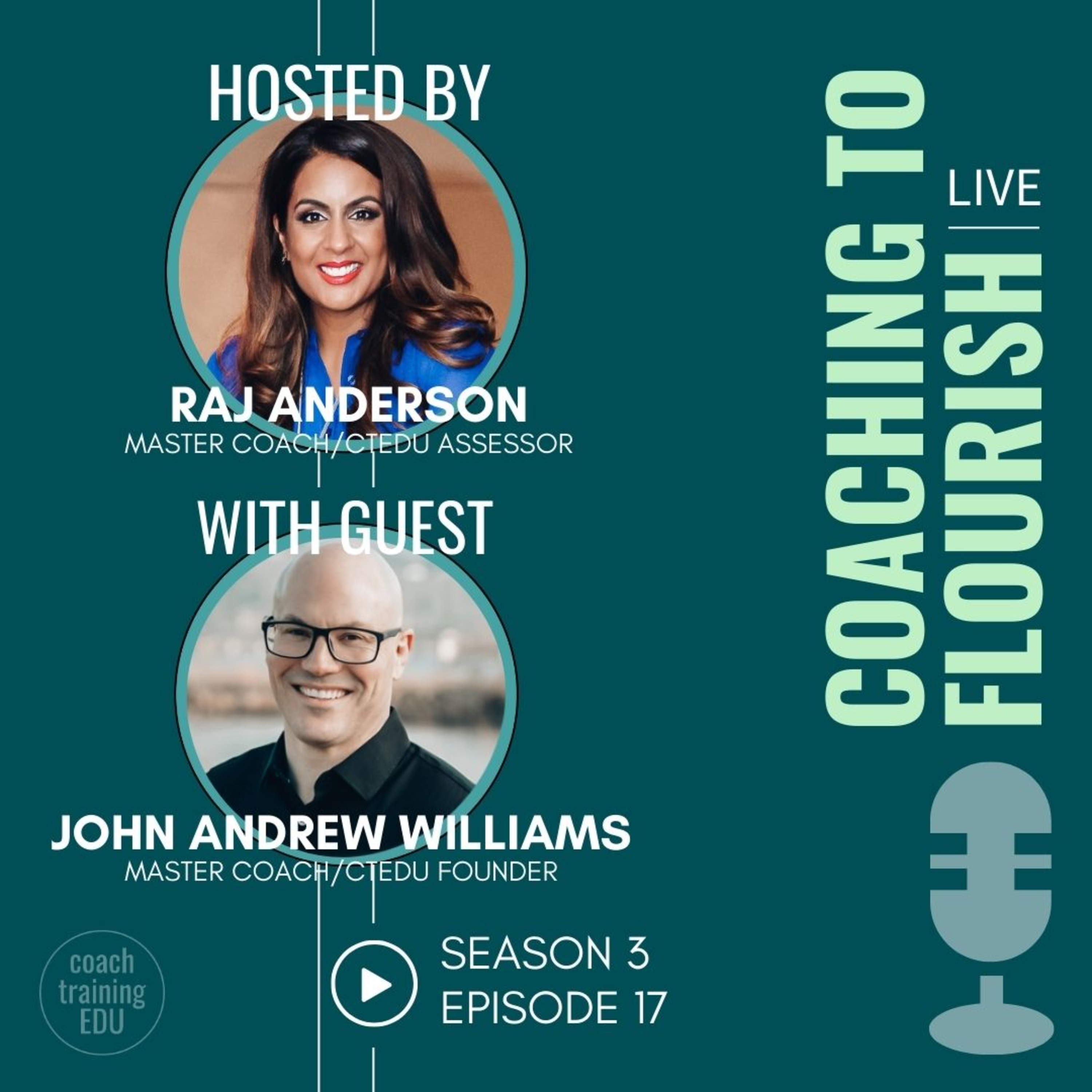 In Coaching to Flourish Season 3 Episode 17, host and Master Coach Raj Anderson, with CTEDU founder and Master Coach John Andrew Williams, discuss important coaching themes of being in congruence, how to help clients identify their obstacles and their strengths, and the important qualities of our internal dialogue.