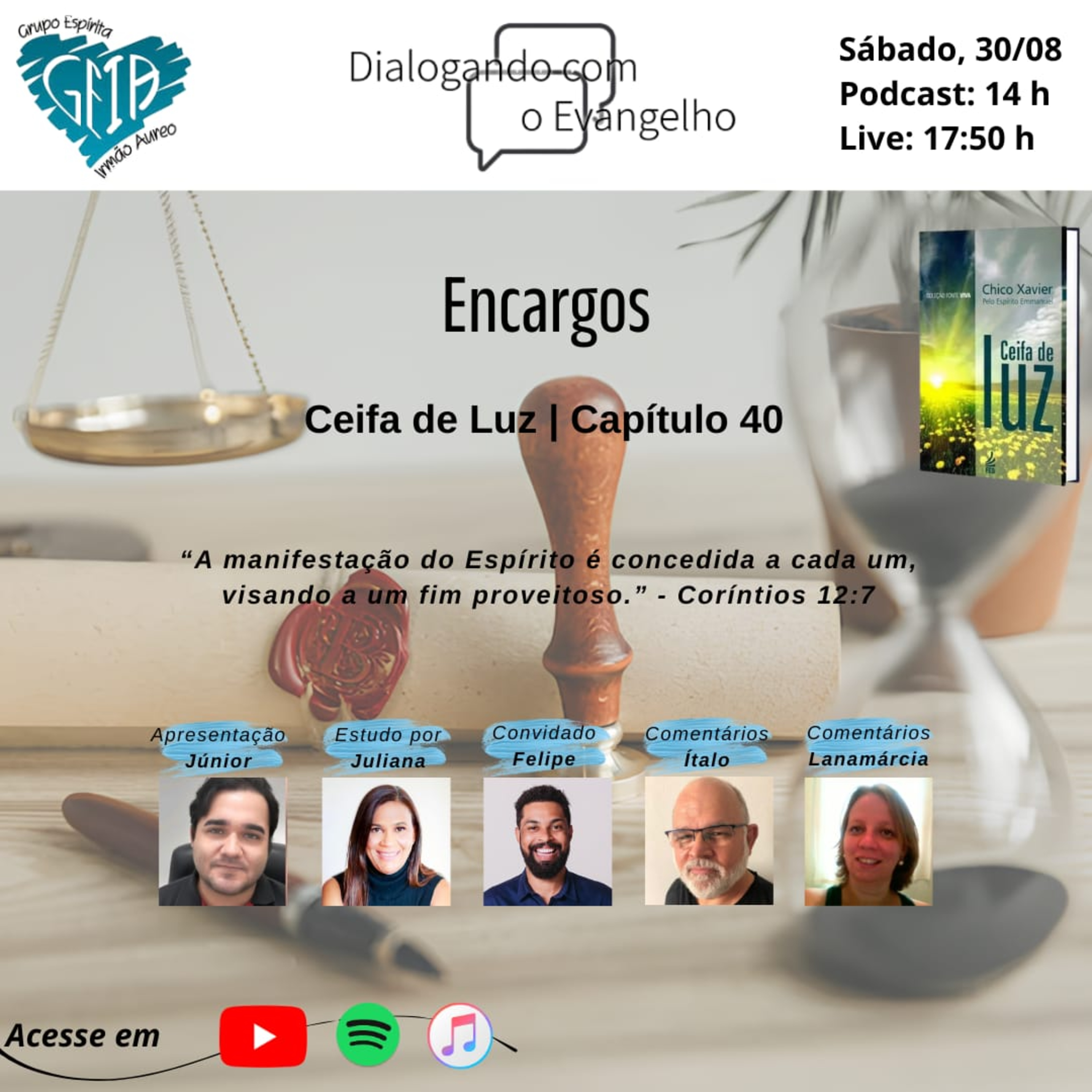 Diálogos à luz do Evangelho e da Doutrina Espírita.Reflexões sobre o tema "ENCARGOS", com base NO CAP. 40 do livro: CEIFA DE LUZ, de Emmanuel, psicografia de Francisco Cândido Xavier.