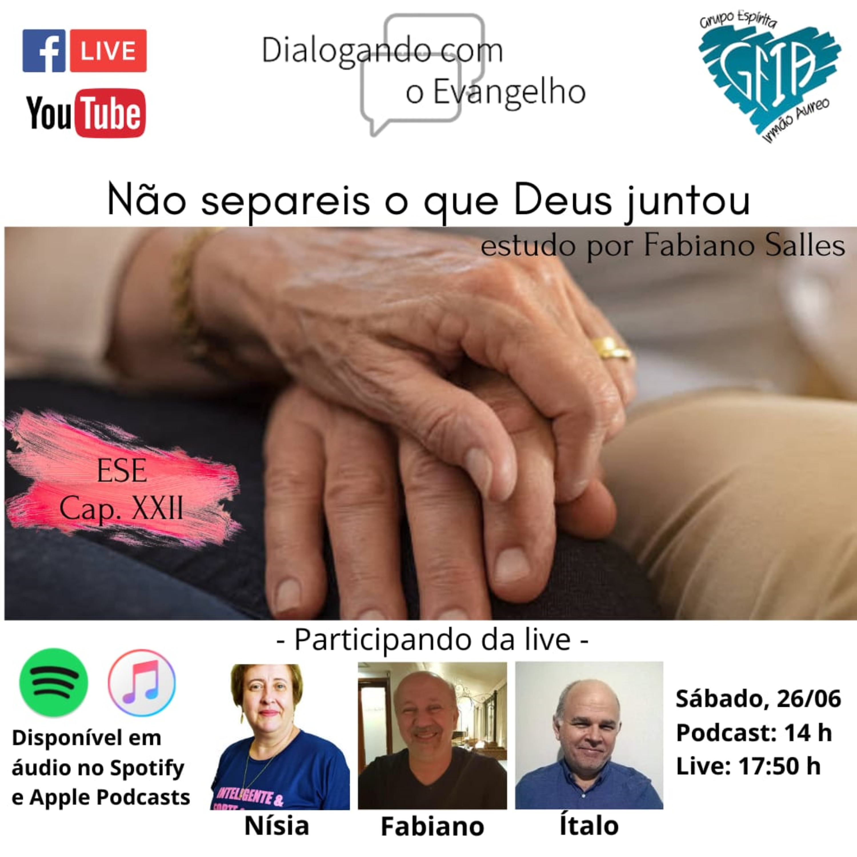 Episódio de número 66 da palestra virtual da Reunião de Estudos do Evangelho do Grupo Espírita "Irmão Áureo" - 26/06/2021