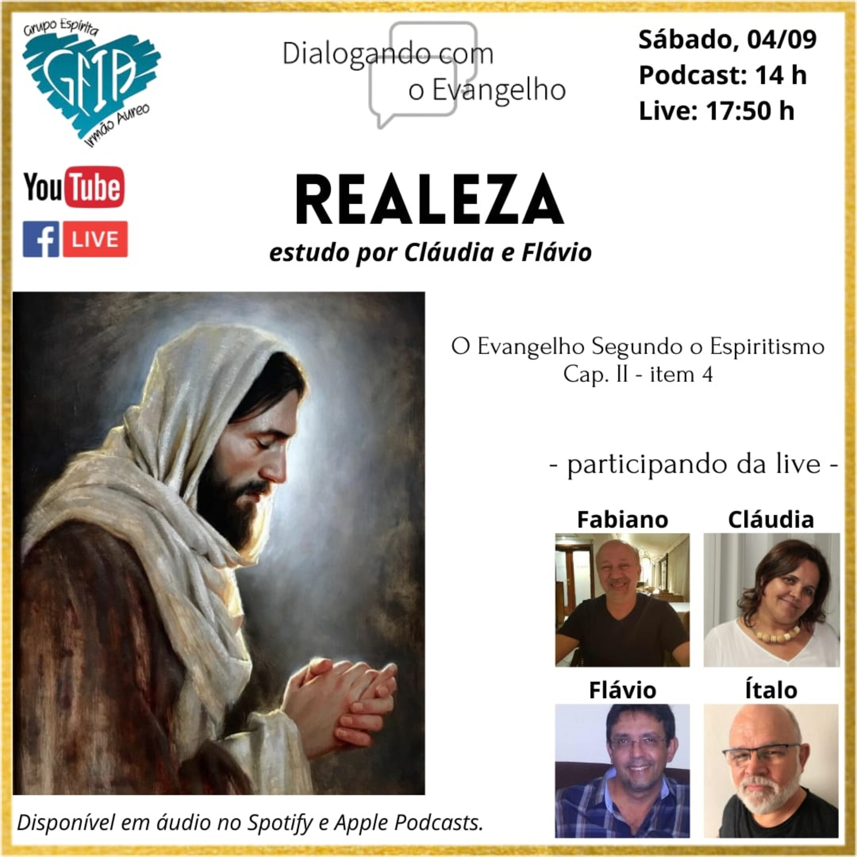Episódio de número 76 da palestra virtual da Reunião de Estudos do Evangelho do Grupo Espírita "Irmão Áureo" - 04/09/2021