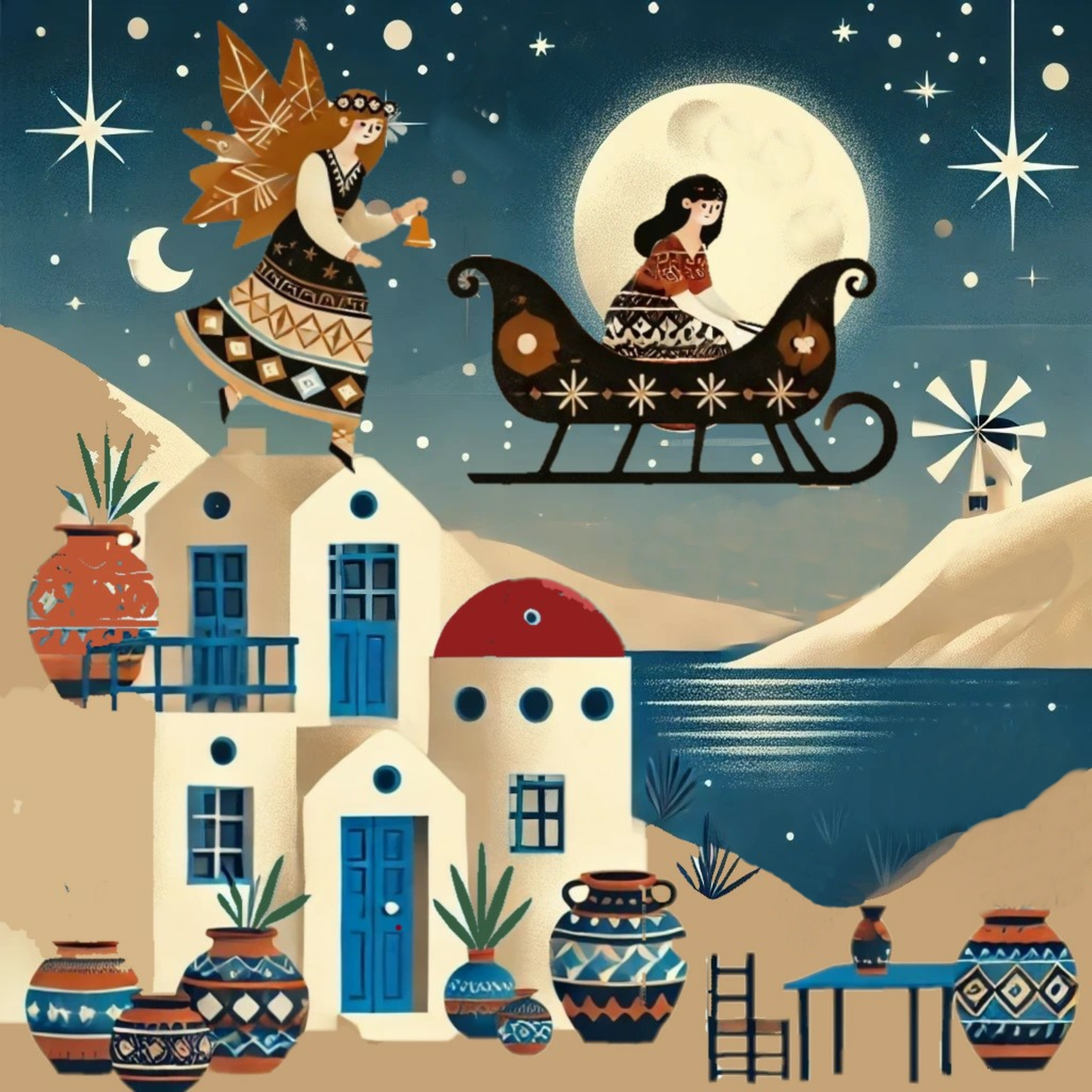 Στην Κρήτη, οι «Σκαλικάντζαροι» αναστατώνουν τις αυλές, αλλά τα καμένα κλαδιά ελιάς και τα φωτεινά αστέρια στις αυλές τους απομακρύνουν. Στο Ιόνιο, οι μυρωδιές από κουραμπιέδες και μελομακάρονα γεμίζουν τον αέρα, ενώ στεφάνια από δάφνη και ελιά προστατεύουν τα σπίτια.