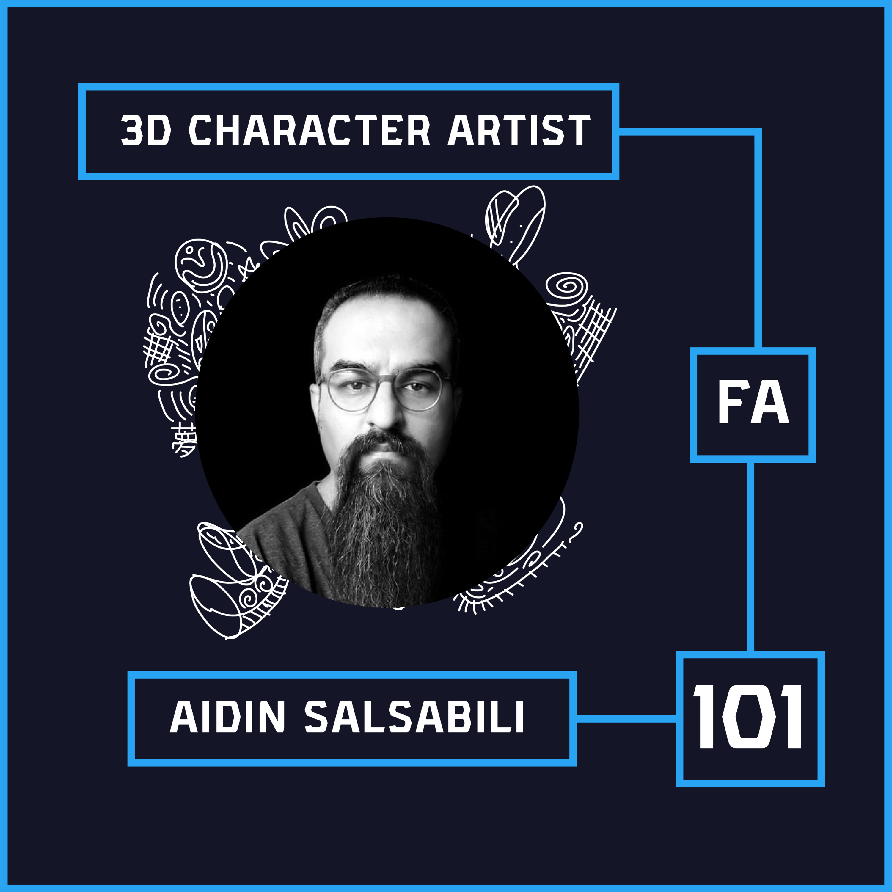 ➗Guest : @aidin_salsabili is a 3D modeler, character artist and Creature sculptor from Austin,Texas.