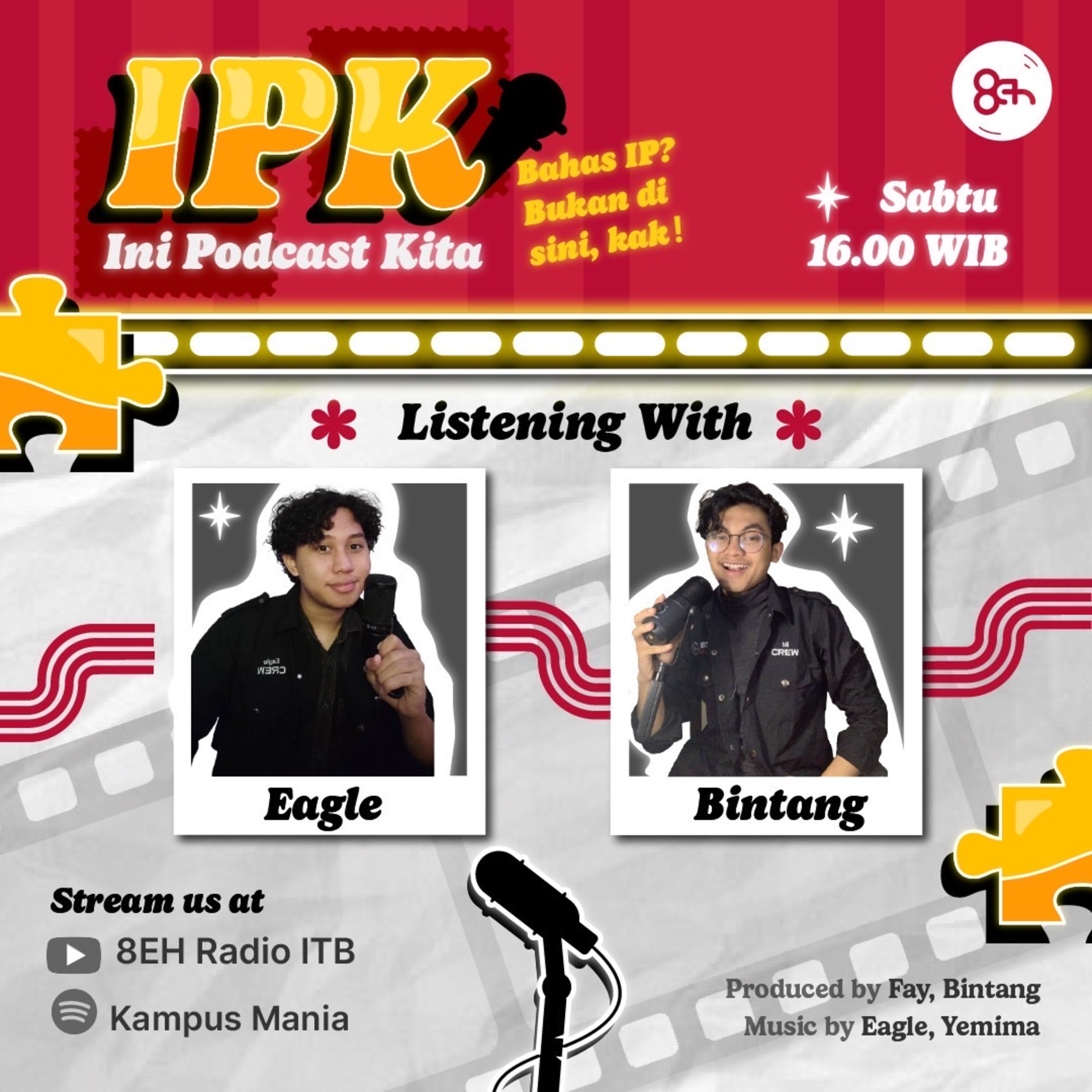 IPK (Ini Podcast Kita) merupakan sebuah podcast yang mewakilkan curhatan mahasiswa terutama Kampus Mania. Podcast ini bakal membahas topik-topik yang relatable dengan keseharian dan kehidupan kuliah Kampus Mania. Episode kali ini Eagle dan Bintang bakal bahas tentang masa-masa awal kuliah yang bikin cultureshock parah nih!