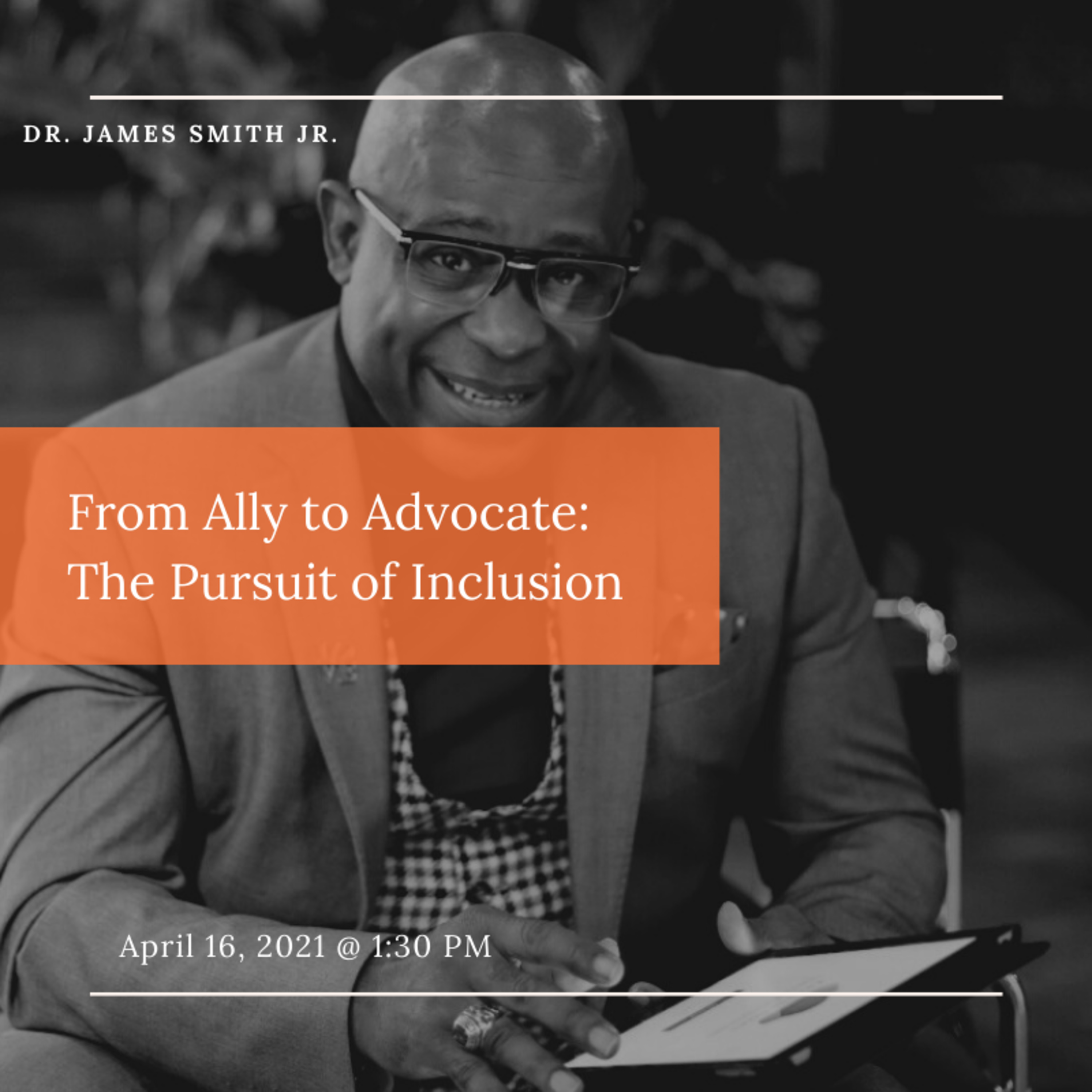 Join us as we discuss Equality, Diversity and Inclusion with Dr. James Smith, Jr. From Ally to Advocate: The Pursuit of Inclusion is an unscripted discussion that covers racism, today's social climate and the need to make the culture of inclusion, diversity and equality a core component of our corporate and societal framework. Discover the difference between acting as an ally vs. being an advocate and what, in the panels humble opinion, must be done to begin to eradicate long held social and cultural beliefs that ultimately correlate into racism and ignorance.