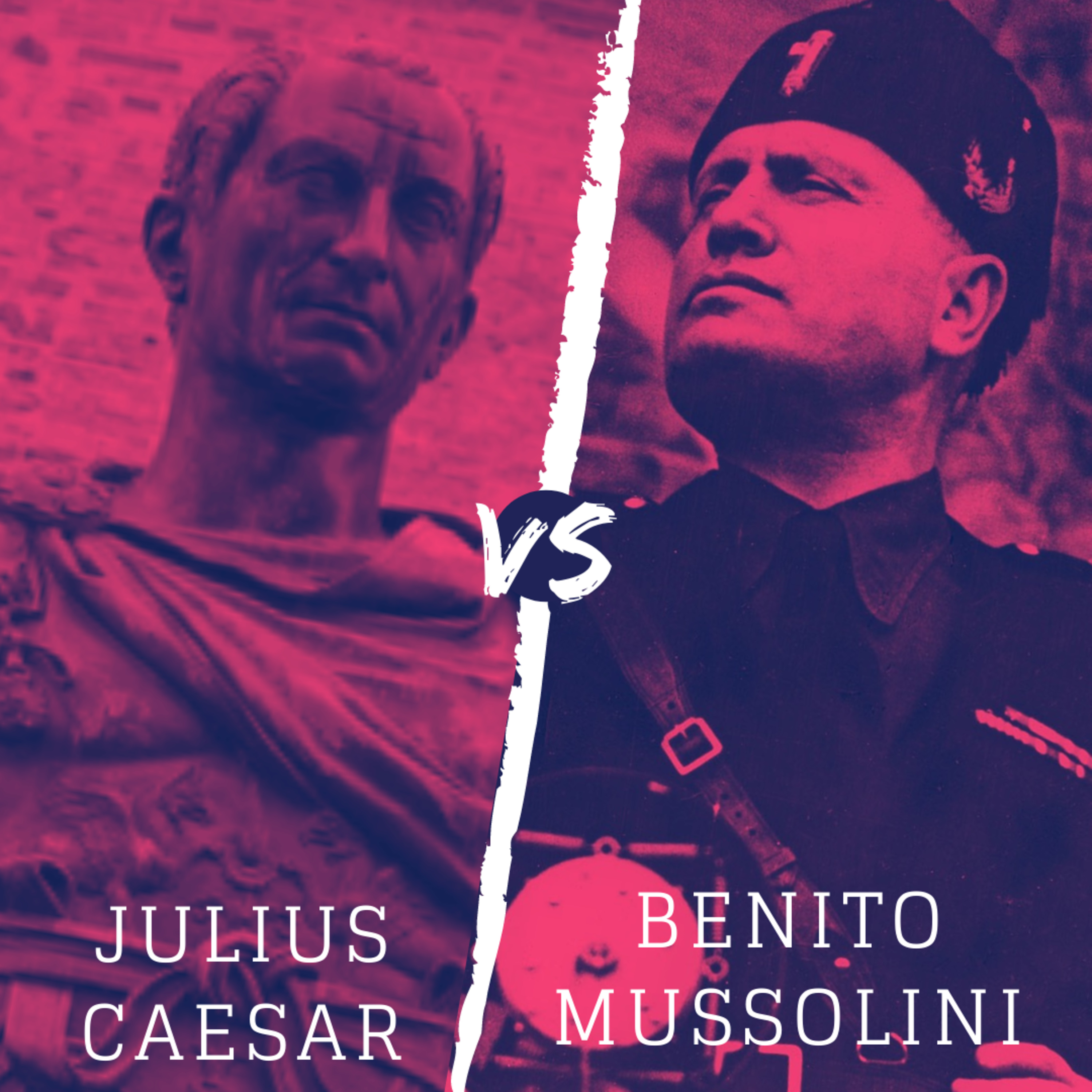 In this episode the hosts discuss the lives and legacies of Julius Caesar and Benito Mussolini. These two dictators battle it out in Round 1 of the knock-out tournament to determine the single greatest dictator of all time. The hosts discuss Caesar's time as a Roman General, his rise to power, his reforms, assassination and enduring impact. They also discuss Mussolini's invention of Fascism, his seizure of power, his involvement in World War 2 and the considerable influence of Mussolini and Italian Fascism. One of these two dictators will be eliminated from the tournament and the other will remain in contention to be crowned history's greatest dictator.