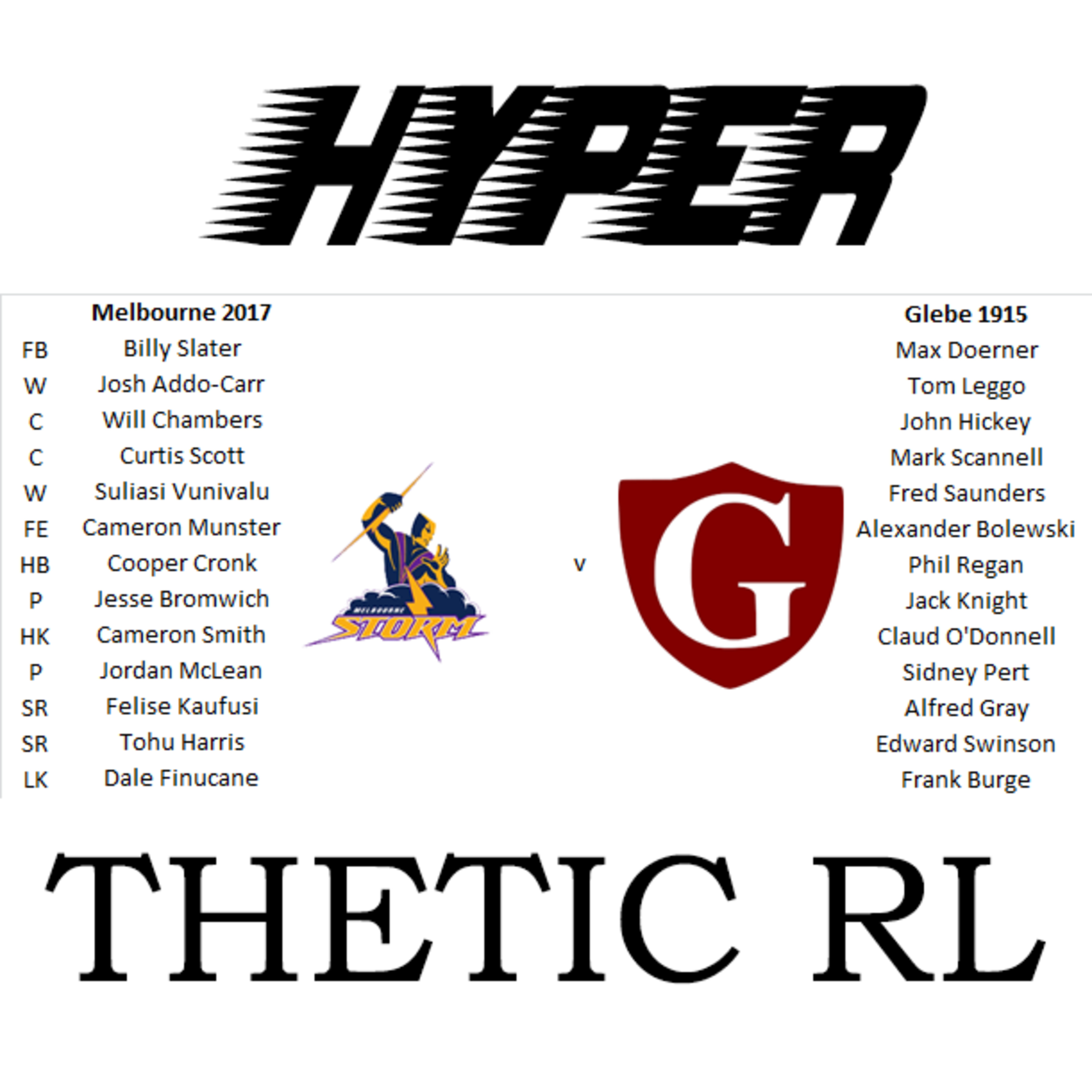 Bracket 26 - Melbourne 2017 v Glebe 1915