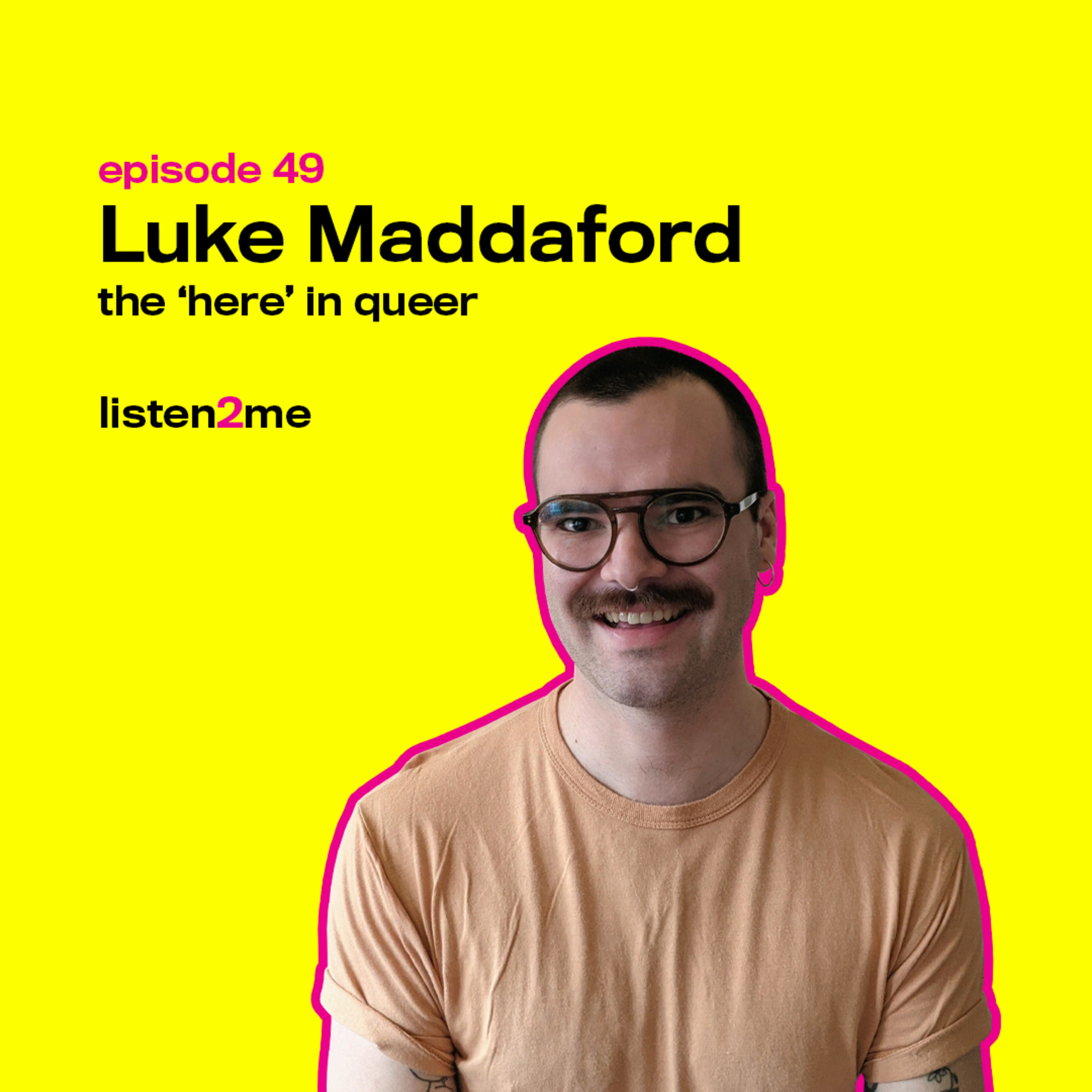 Luke Maddaford (he/him) makes art dedicated to exploring the connection between identity and landscape; queer space and culture outside of major metropolises; placemaking; and queer histories and futures. A multidisciplinary artist (drawing, writing, sculpting), Luke has exhibited throughout Canada and participated in residencies in Fort McMurray, Windsor, Toronto, and Northern Ontario. In this chat with Renée and Gio, Luke talks about his work as an artist, curator, and community organizer; his degrees in "drawing" (Diploma in Visual Art and Design from Keyano College; Bachelor of Fine Arts degree in Drawing from the Alberta College of Art + Design; Master of Fine Arts degree in Visual Art from the University of Windsor); the inspiration behind organizing Windsor's "Beers for Queers" events; founding LEFT Contemporary, a grassroots studio and exhibition space; and the practice of art in a pandemic. Find more of Luke's work at lukemaddaford.com or follow him on Instagram @lukemaddaford, and keep an eye out for his upcoming project with Undecimals. You can find more Listen 2 Me goodies on our Patreon or follow us on social media @listen2mepod (Instagram, Twitter, Facebook).