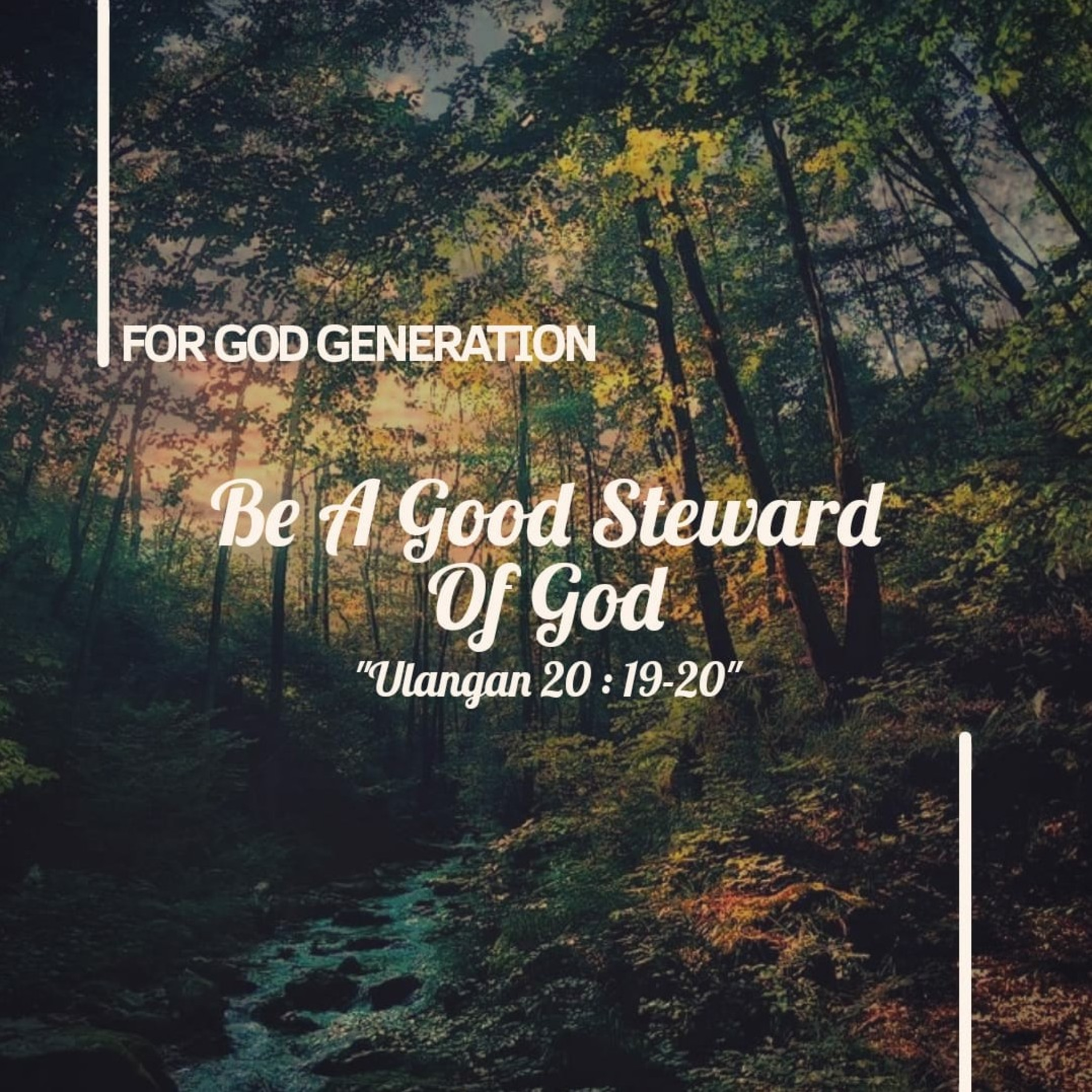 Episode 10 kali ini memulai tema pada bulan ini yaitu PEDULI dengan judul "Be a Good Steward of God" yang dibawakan oleh Ps. Yohanes Hoggie Hardiant. Setelah mendengarkan podcast kali ini semoga kita bisa semakin peduli pada lingkungan dan menyadari bahwa semua yang ada di dunia ini adalah pemberian Tuhan semata dan kita patut untuk menjaga dan melestarikannya. Semoga kalian tetap sehat selalu dan jangan lupa untuk tetap berdoa dan bersaat teduh ya! Sampai jumpa di podcast selanjutnya. Tuhan Yesus memberkati. #4GGeneration #ForGodGeneration #Christian #Youth #Ministry #2020