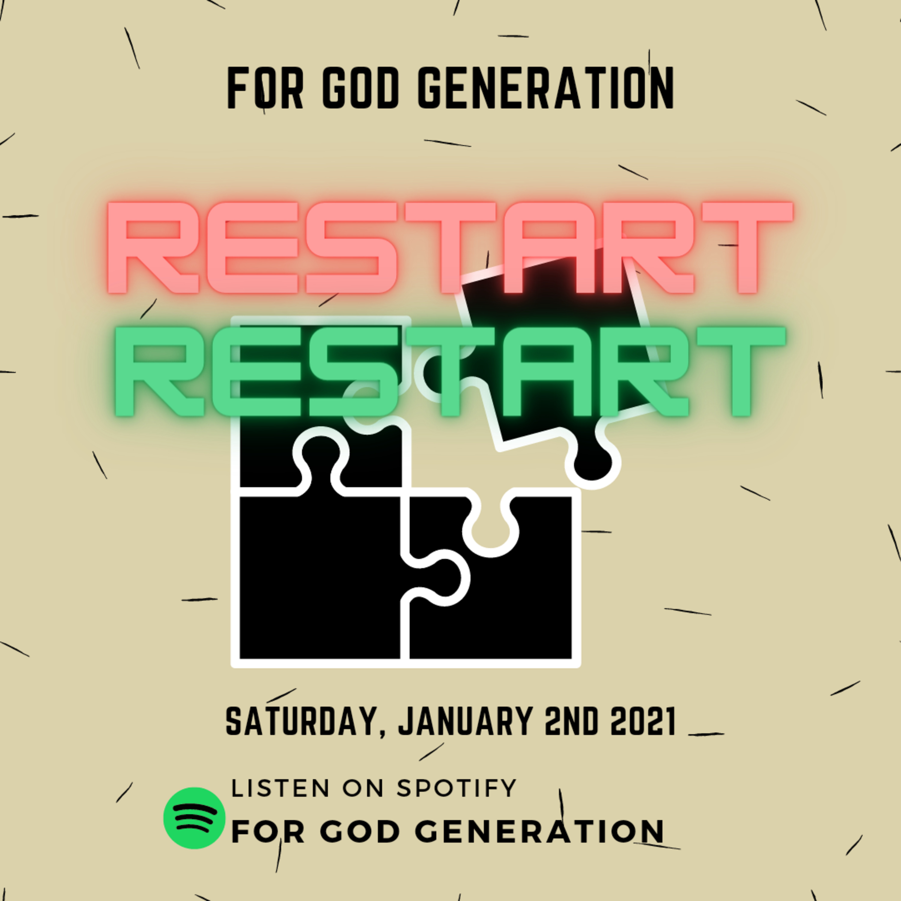 Episode 28 kali ini merupakan episode pertama dari ibadah podcast For God Generation di tahun 2021. Memasuki tahun yang baru, kita perlu untuk memfokuskan kembali tujuan hidup kita dan terlebih lagi memfokuskan diri kepada Tuhan. Sama seperti gadget yang memerlukan restart jika mengalami gangguan atau kelambatan, kita juga perlu untuk "restart" hidup kita untuk bisa kembali fokus terhadap tujuan hidup kita pada Tuhan. Walau masih ibadah #DiRumahAja, tetap semangat yaaa! Sehat selalu, Selamat Tahun Baru, Tuhan Yesus memberkati!