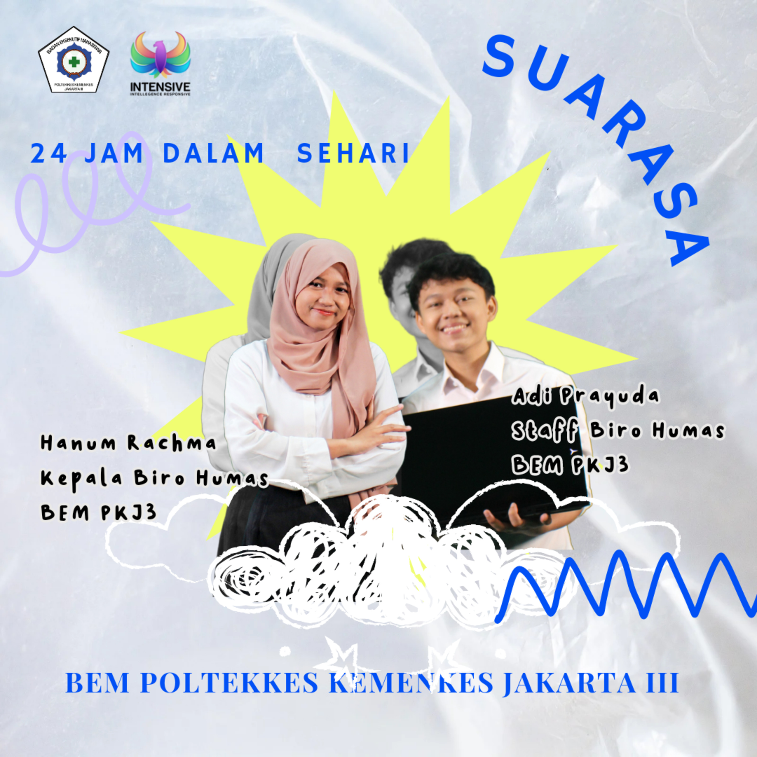 Kali ini kita mengangkat tema 24/7 sebagai mahasiswa dan organisator dengan menghadirkan Hanum Rachma (kabiro humas) dan Adi Prayudha (staf humas). Kira-kira bagaimana ya cara mereka mengatur waktunya? Yuk cari tau dan dengar jawabannya.