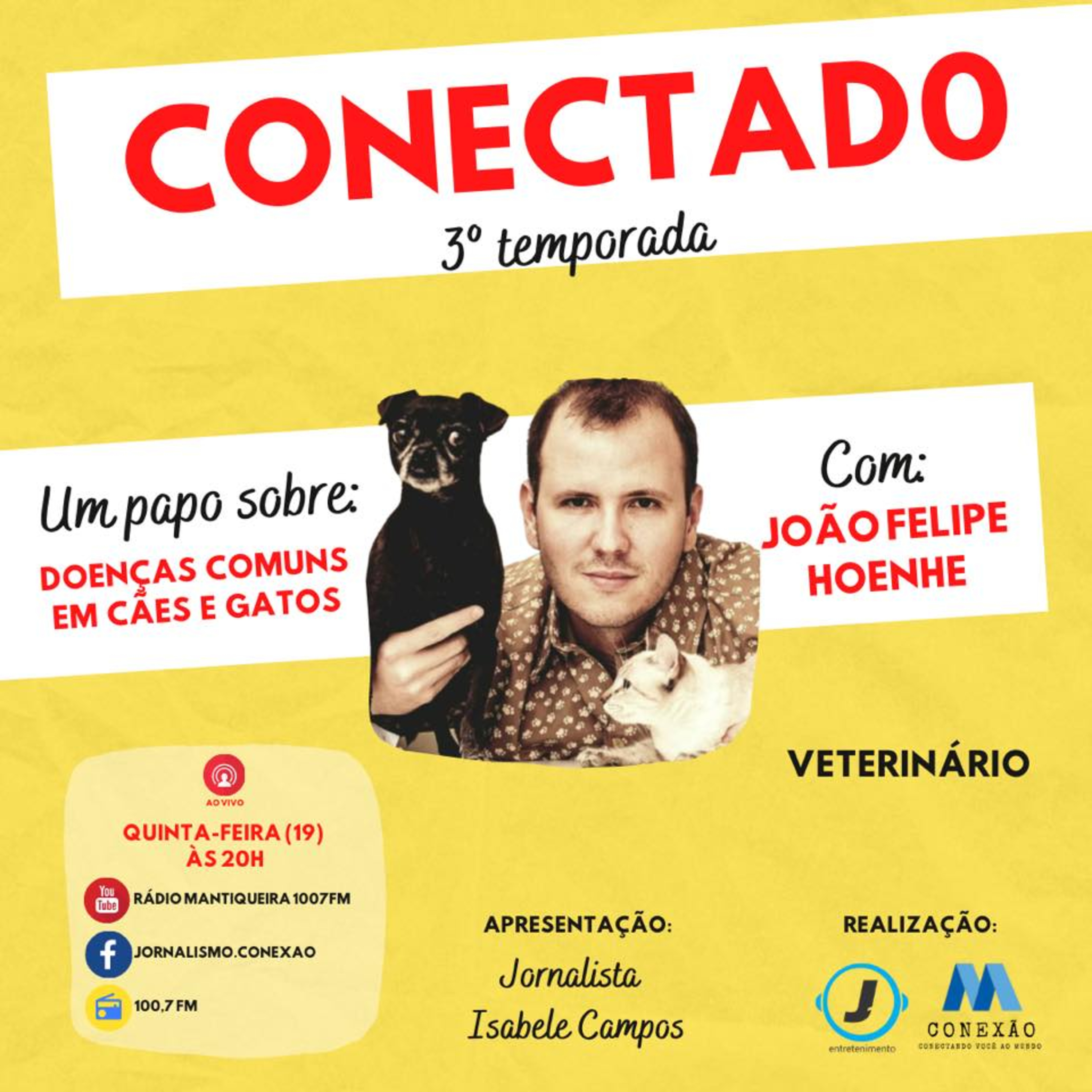 No Conectado #3, o convidado foi o veterinário João Felipe Hoenhe. Dessa vez aprendemos mais sobre os cuidados que devemos tomar ao cuidar de nossos cães e gatos. Nossa apresentador, mãe de pet, ficou assustada...vem escutar!