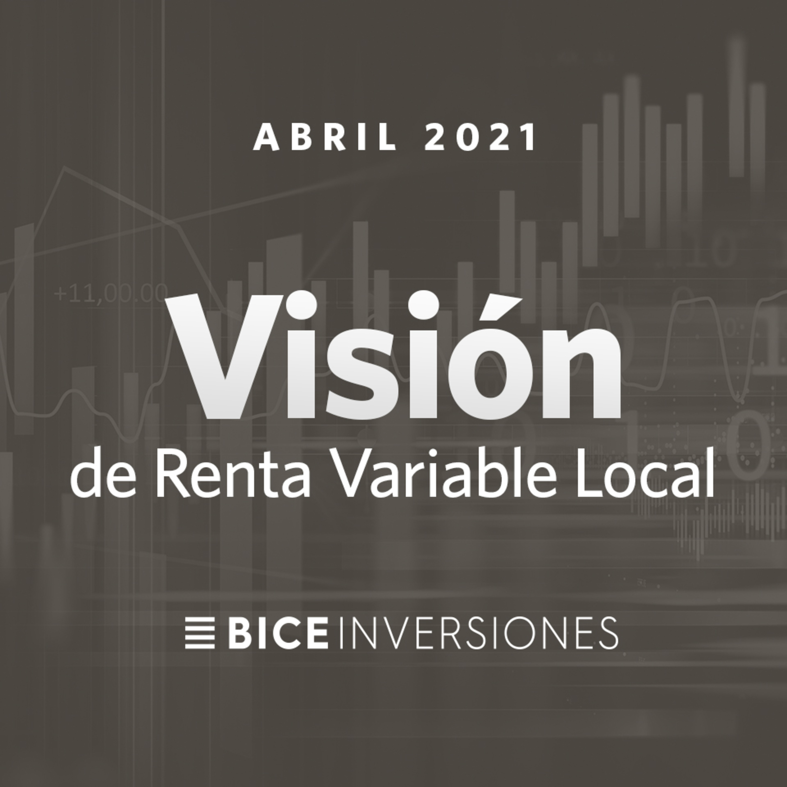 Te invitamos a revisar nuestra Visión de Renta Variable Nacional para el mes de abril, con Aldo Morales, subgerente de Estudios Renta Variable de BICE Inversiones. En marzo, la bolsa chilena siguió en terreno positivo, registrando un retorno de 7,1% en pesos, acumulando su quinto mes consecutivo al alza. La temporada de resultados del cuarto trimestre 2020 dio cuenta de un crecimiento de 23% en utilidades de empresas IPSA. Para el mes de abril no realizamos cambios de carteras recomendadas y seguimos con un posicionamiento enfocado en empresas con atractiva dinámica de resultados, rezago en valorización y alto retorno por dividendos.