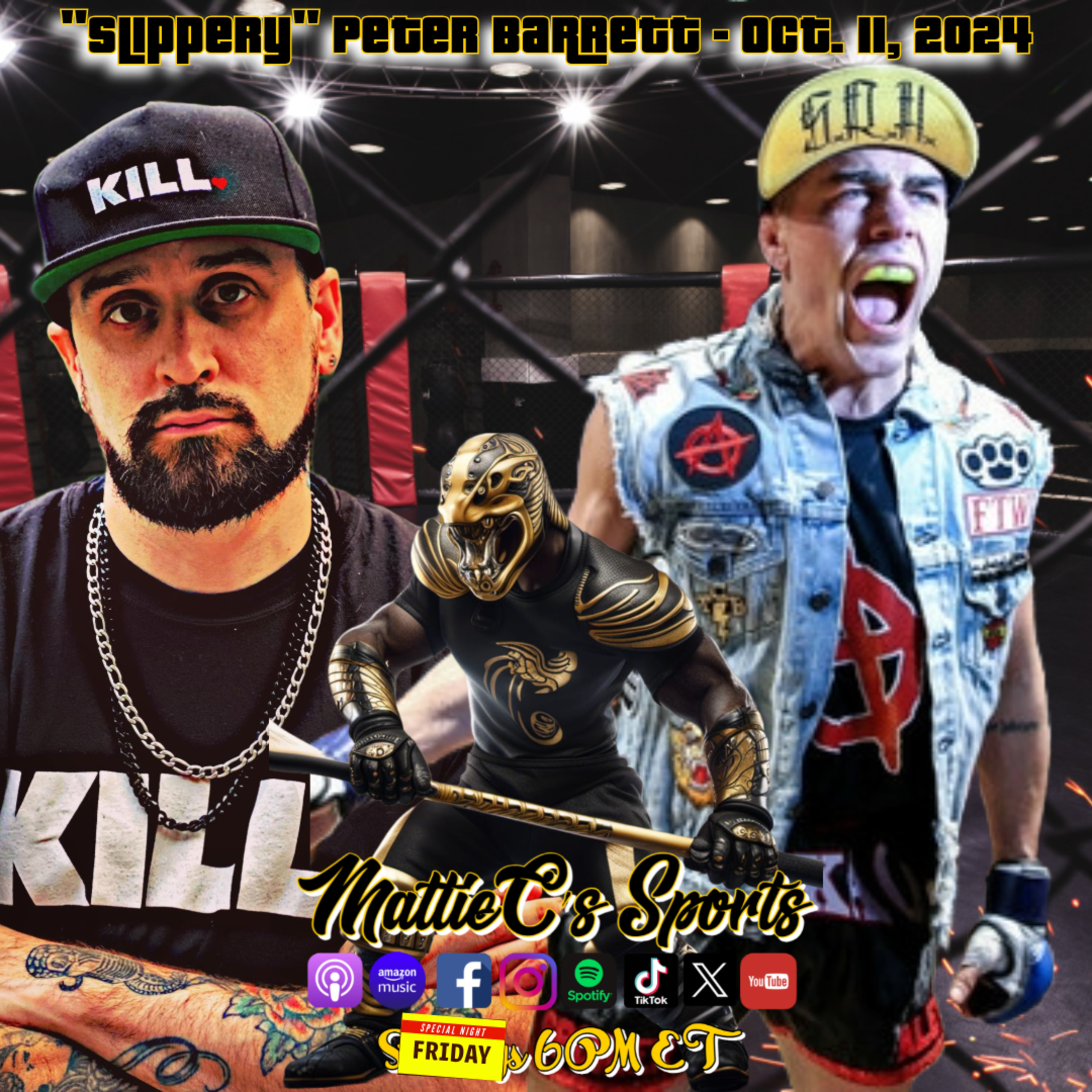 "Slippery Peter Barrett" SPECIAL NIGHT 6PM ET Oct. 11, 2024 to talk about his upcoming Gamebred Bare Knuckles match against Charlie Rosa on Nov. 15th in Biloxi MS.