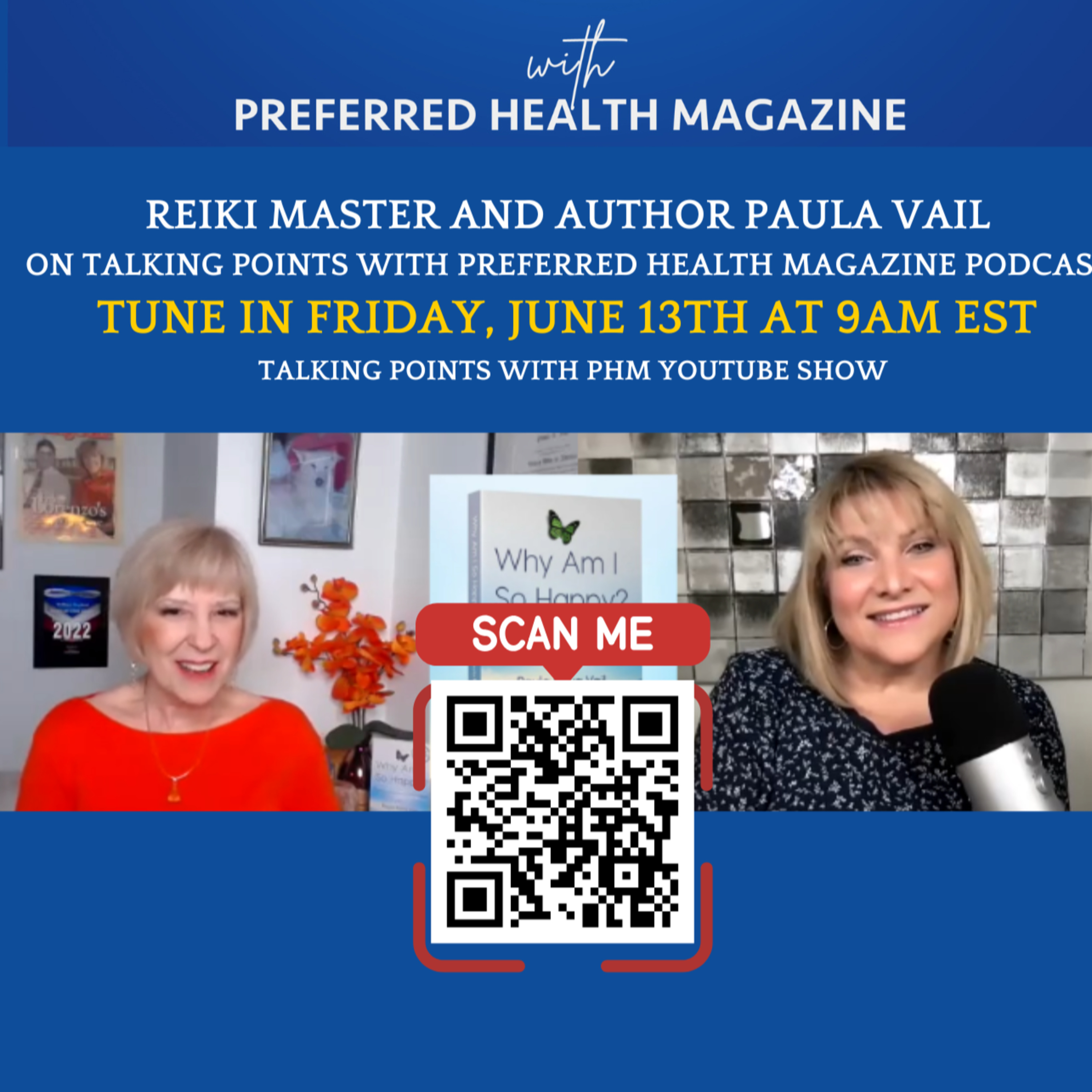 Paula Vail, a Reiki Master, author, and host of "Elevating Your Life," is featured on "Talking Points with PHM" podcast - discussing her book "Why Am I So Happy?" and her journey in wellness and personal empowerment.Paula Vail is a prominent figure in the wellness industry, recognized for her extensive work as a Reiki master/teacher, author, and television/radio host. Her journey reflects a deep commitment to personal empowerment and holistic healing, demonstrating her passion for improving the lives of individuals through alternative healing practices and positive energy.Early Life and CareerPaula Vail began her career in the restaurant industry, where she worked for nearly three decades. After earning an Associate of Arts in accounting from Grays Harbor Community College, she started as a server and climbed the ranks to become a manager and eventually the owner of a restaurant. This experience developed her entrepreneurial spirit and nurtured her passion for service and connection with others.Transition to Reiki and WellnessThe turning point in Paula's life came through her beloved dog, Shotzy, who was ill. Inspired to learn Reiki to help her, Paula quickly embraced this ancient healing practice. Over the past 12 years, she has become a certified Usui and Karuna Reiki master/teacher, offering Reiki sessions and classes through her business, Wellness Inspired.Her deepening connection to Reiki led her to hosts radio shows including “For the Love of Reiki,” and “Choices: Finding Your Joy,” on Seattle’s radio station KKNW, and on various online platforms such as Bingenetworks TV and 5DTV. Through these shows, Paula shares the teachings of Reiki and promotes positive energy and wellness to her audience.Achievements and RecognitionPaula is also the author of the award-winning book “Why Am I So Happy?”, through which she provides readers with insights into achieving happiness through conscious choices. Her work has garnered her significant recognition, including being inducted into Marquis Who's Who, receiving multiple awards from the Preferred Professionals Network and being featured prominently in media such as Times Square.Additionally, she has co-authored works like the "Reiki Training Manual,” emphasizing her commitment to spreading knowledge about healing practices. Paula has continually been recognized for her contributions to the wellness community, having received accolades for her leadership and innovation in the personal development space.Community Involvement and Future PlansBeyond her professional pursuits, Paula is dedicated to animal welfare and is in the process of establishing a nonprofit animal rescue called "Jackie's Safe Haven." This initiative reflects her belief in the interconnectedness of all living beings and her desire to contribute positively to the world.Paula Vail exemplifies a life dedicated to service, healing, and empowerment. Through her multifaceted roles and heartfelt commitment to uplifting others, she continues to inspire countless individuals on their paths to well-being and happiness. Her story serves as a testament to the profound impact one person can have in the realms of wellness, media, and personal empowerment.