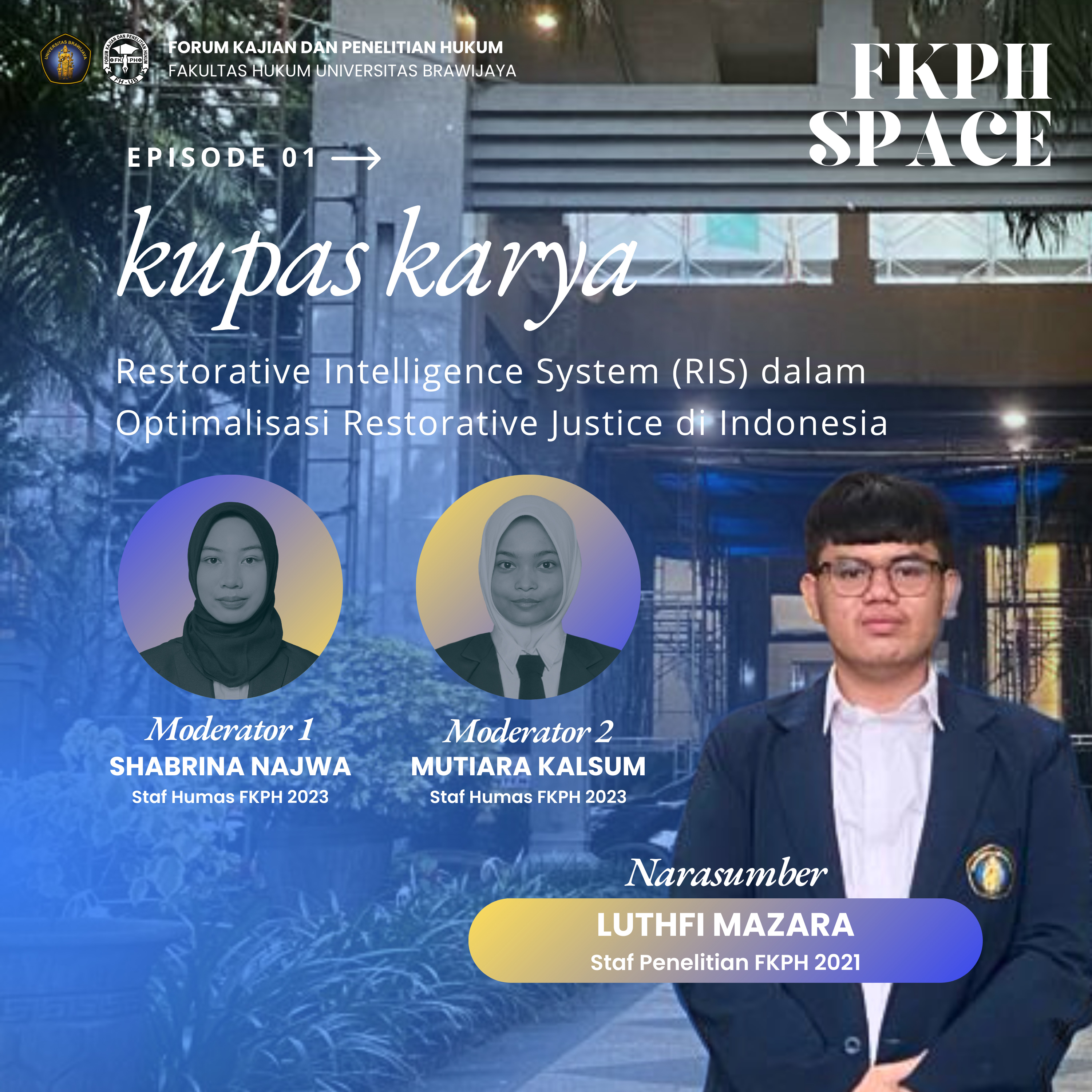 Pada FKPH SPACE pertama ini akan membahas karya dari Kak Luthfi yang berjudul "Restorative Intelligence System (RIS) dalam Optimalisasi Restorative Justice di Indonesia".