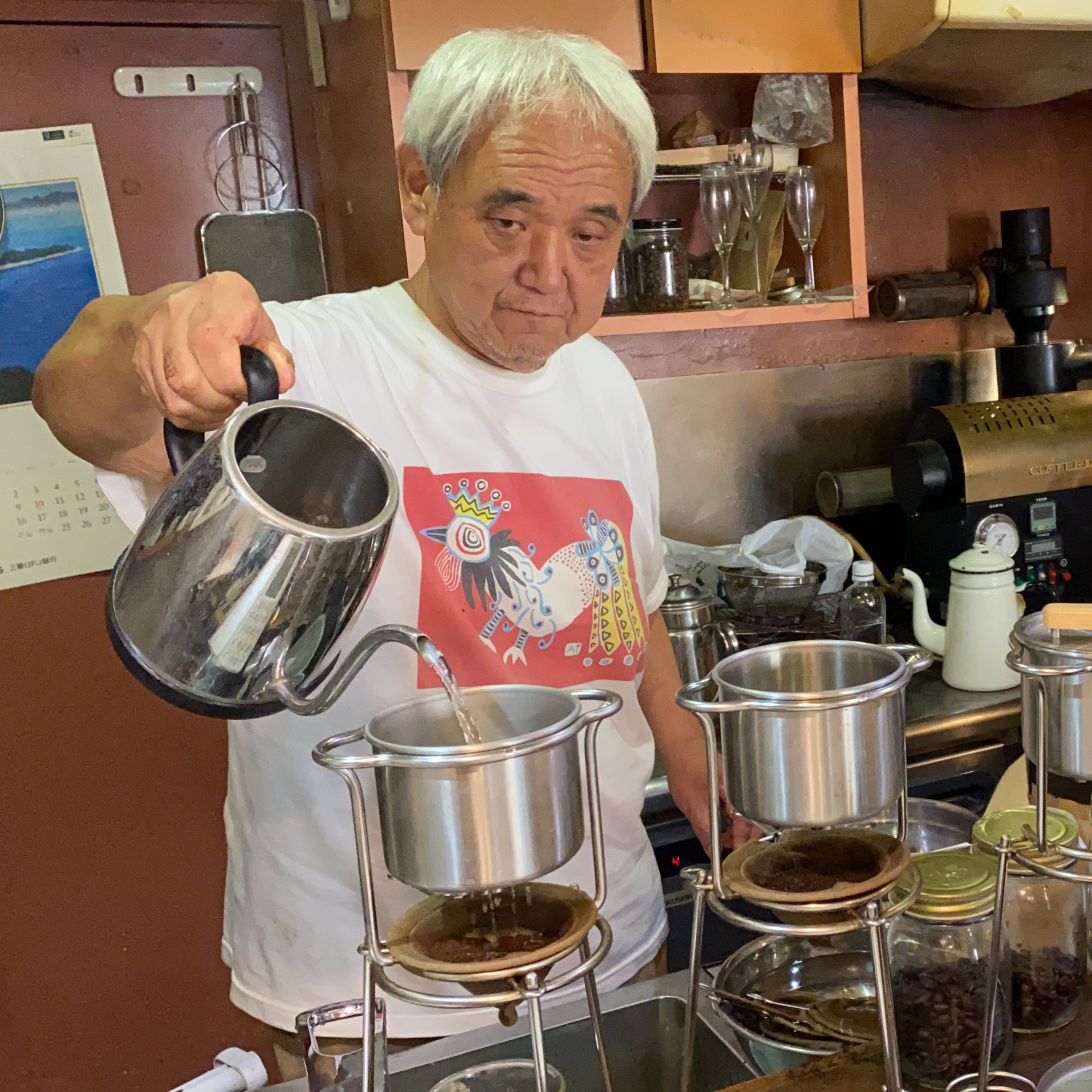 大坊珈琲店:東京・南青山で2013年まで38年間続いた名喫茶店。店主・大坊勝次さんは繁田さんと共にネルドリップ珈琲の普及に取り組まれている。