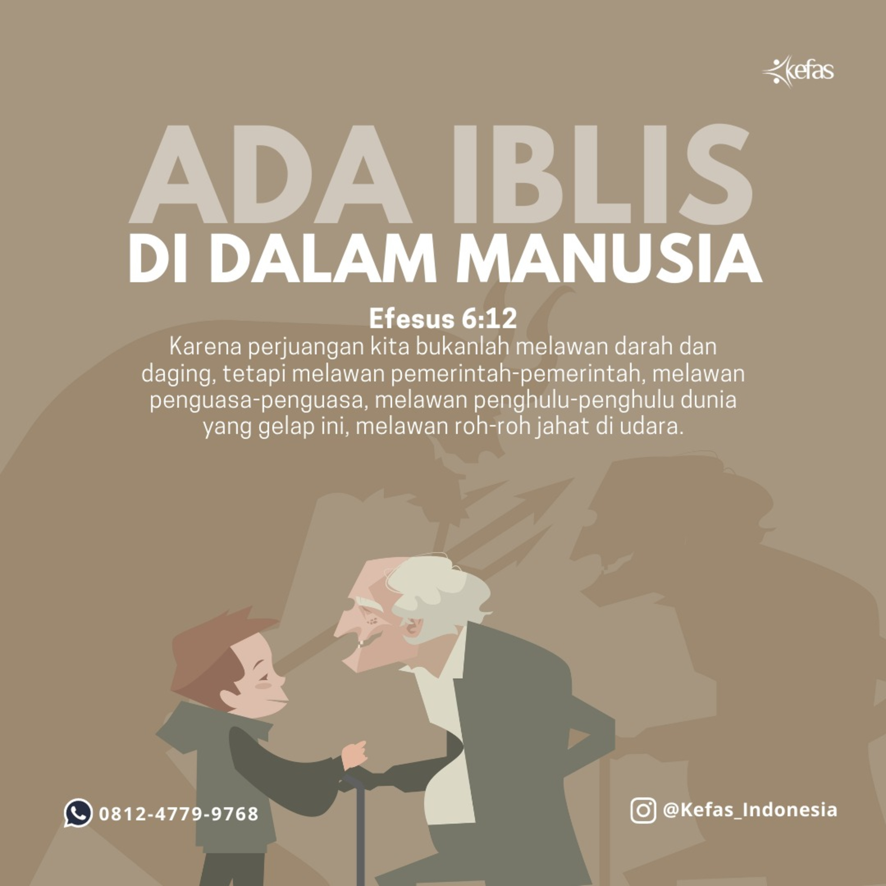 Karena perjuangan kita bukanlah melawan darah dan daging, tetapi melawan pemerintah-pemerintah, melawan penguasa-penguasa, melawan penghulu-penghulu dunia yang gelap ini, melawan roh-roh jahat di udara.