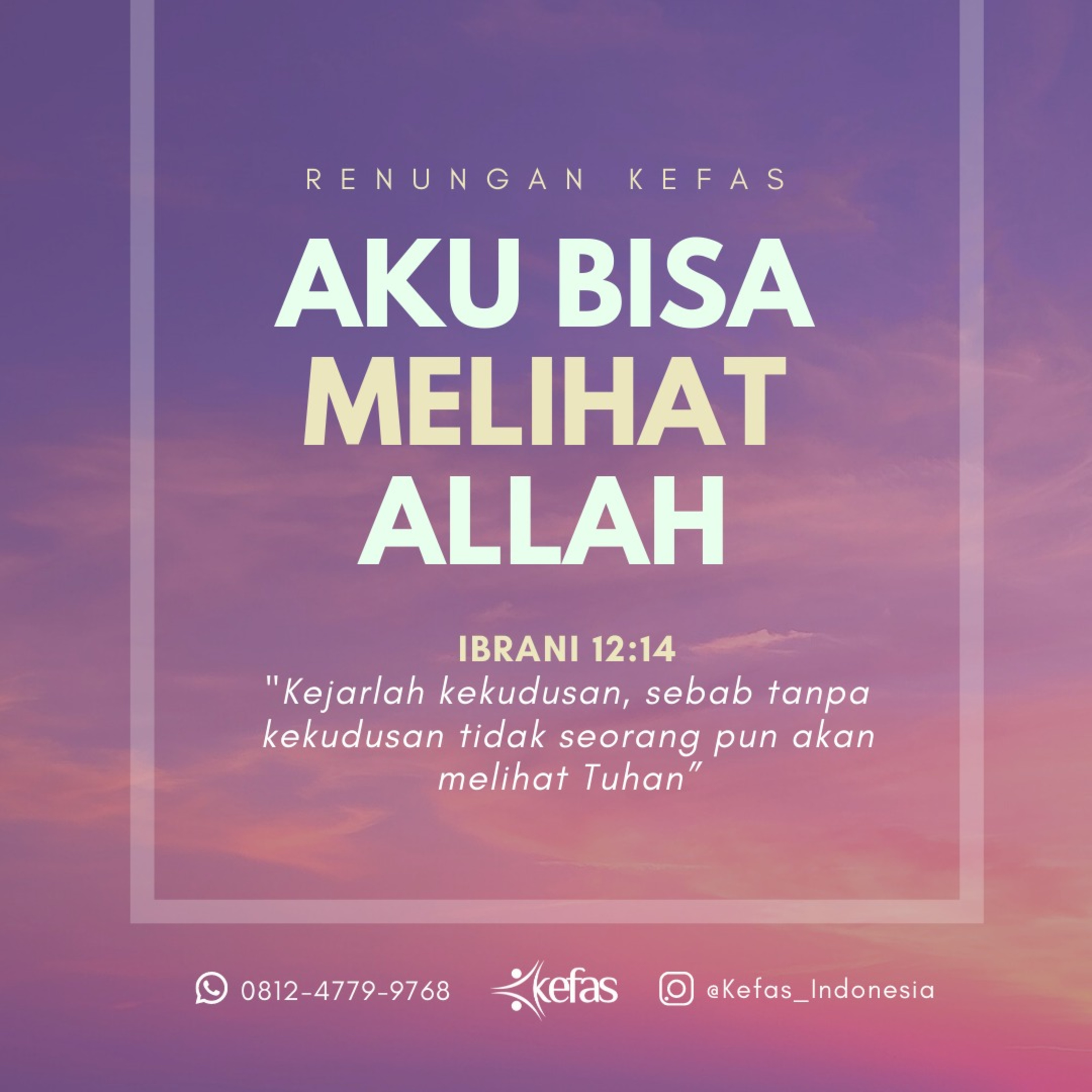 "Kejarlah kekudusan, sebab tanpa kekudusan tidak seorang pun akan melihat Tuhan”