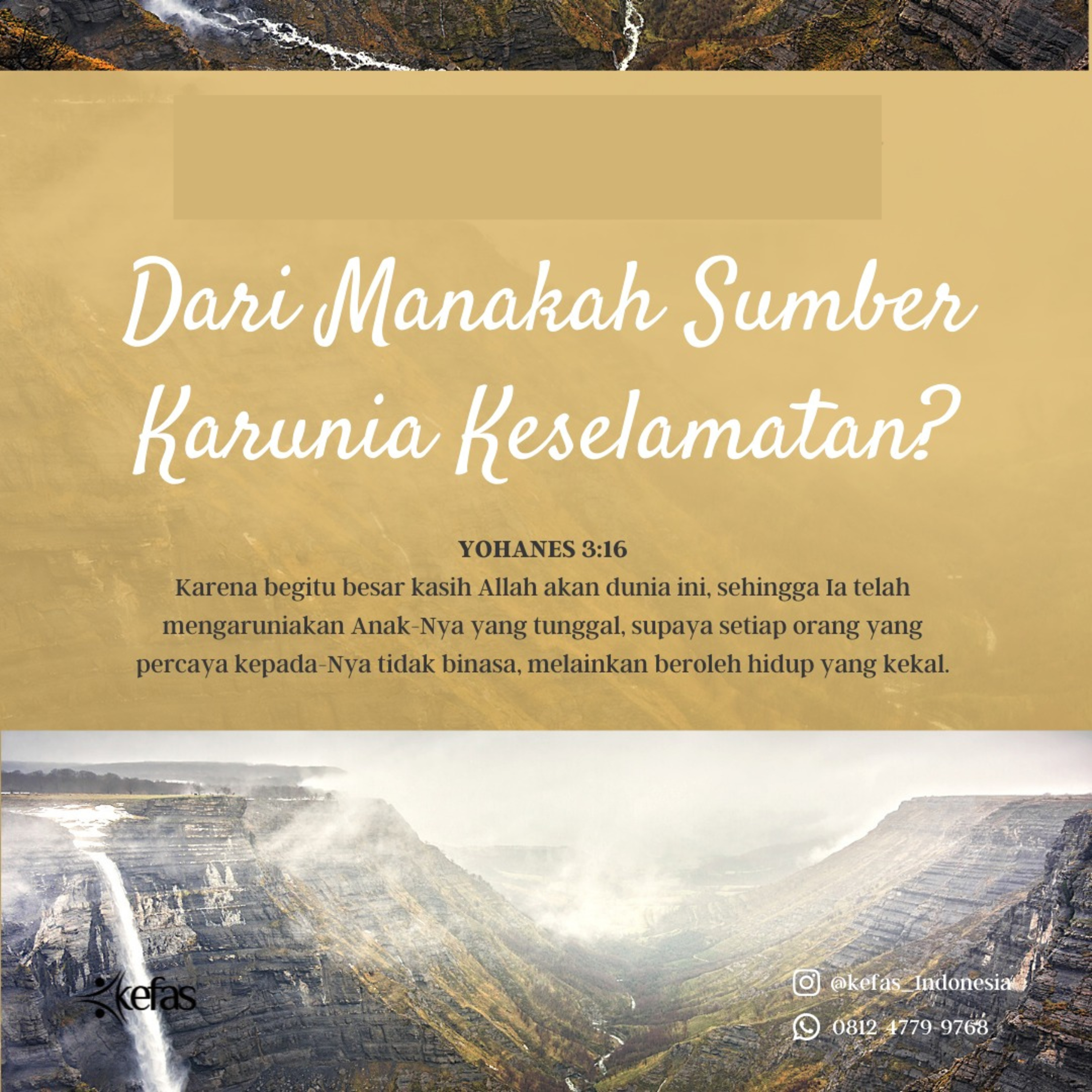 Karena begitu besar kasih Allah akan dunia ini, sehingga Ia telah mengaruniakan Anak-Nya yang tunggal, supaya setiap orang yang percaya kepada-Nya tidak binasa, melainkan beroleh hidup yang kekal.