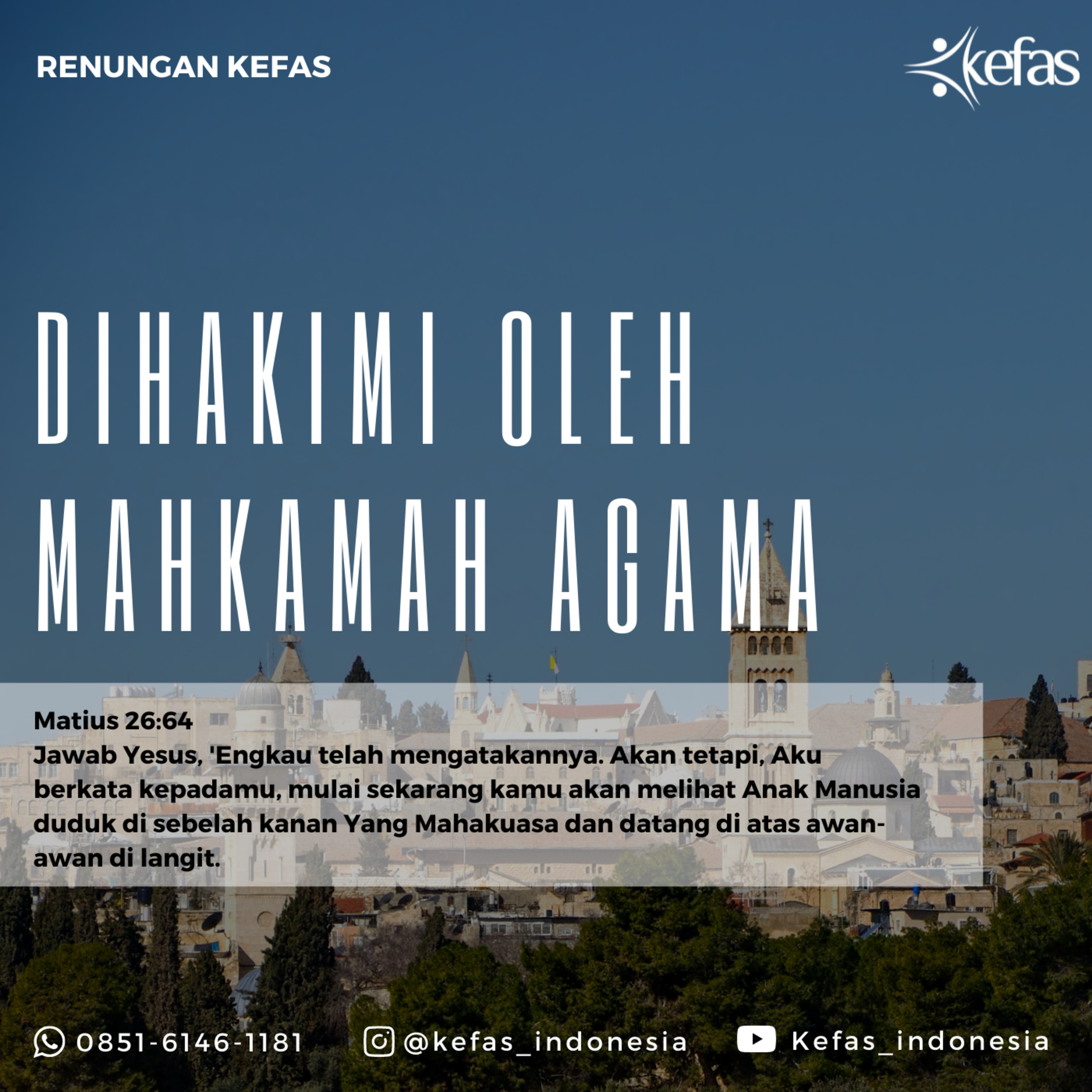 _ Jawab Yesus, 'Engkau telah mengatakannya. Akan tetapi, Aku berkata kepadamu, mulai sekarang kamu akan melihat Anak Manusia duduk di sebelah kanan Yang Mahakuasa dan datang di atas awan-awan di langit._