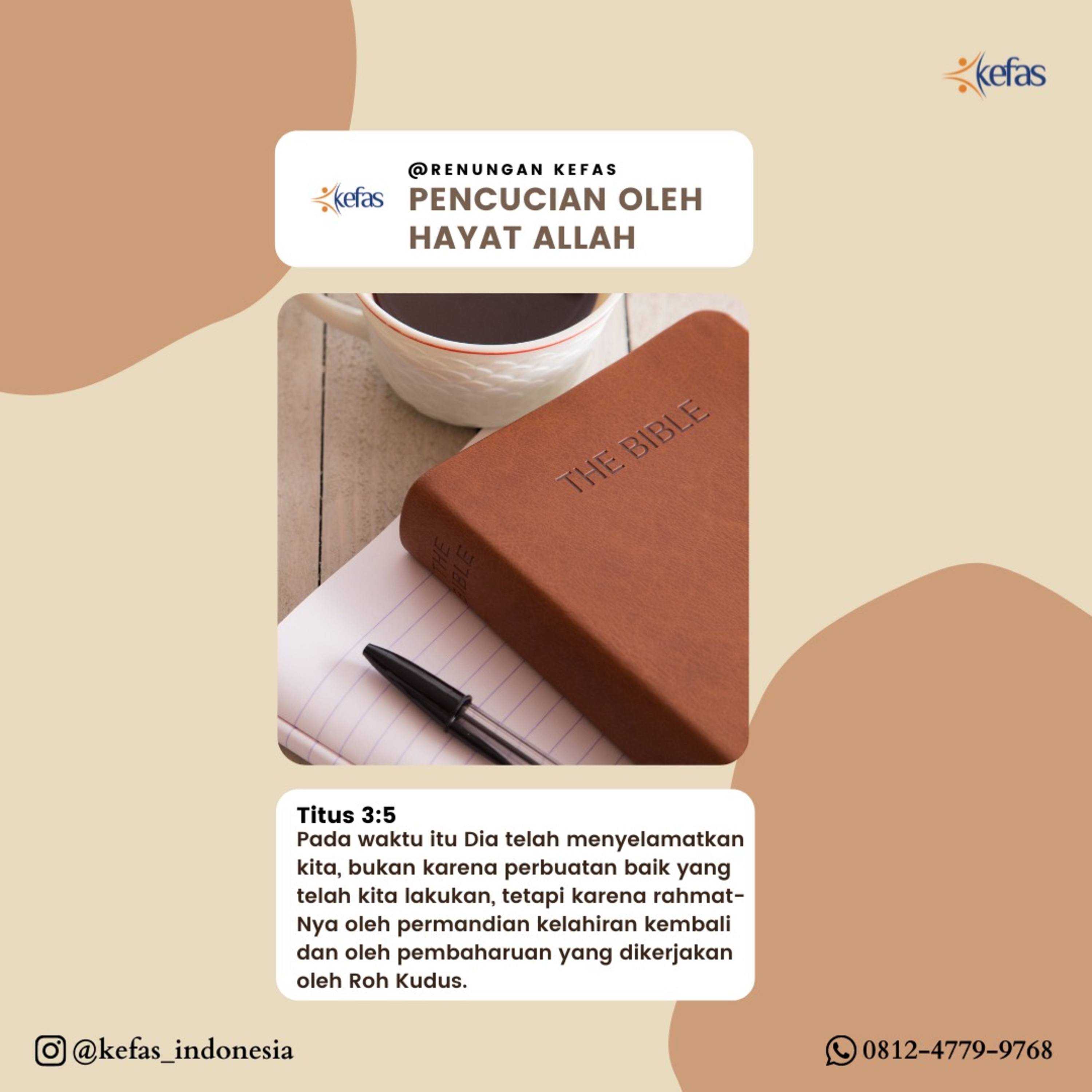 “pada waktu itu Dia telah menyelamatkan kita, bukan karena perbuatan baik yang telah kita lakukan, tetapi karena rahmat-Nya oleh permandian kelahiran kembali dan oleh pembaharuan yang dikerjakan oleh Roh Kudus,"