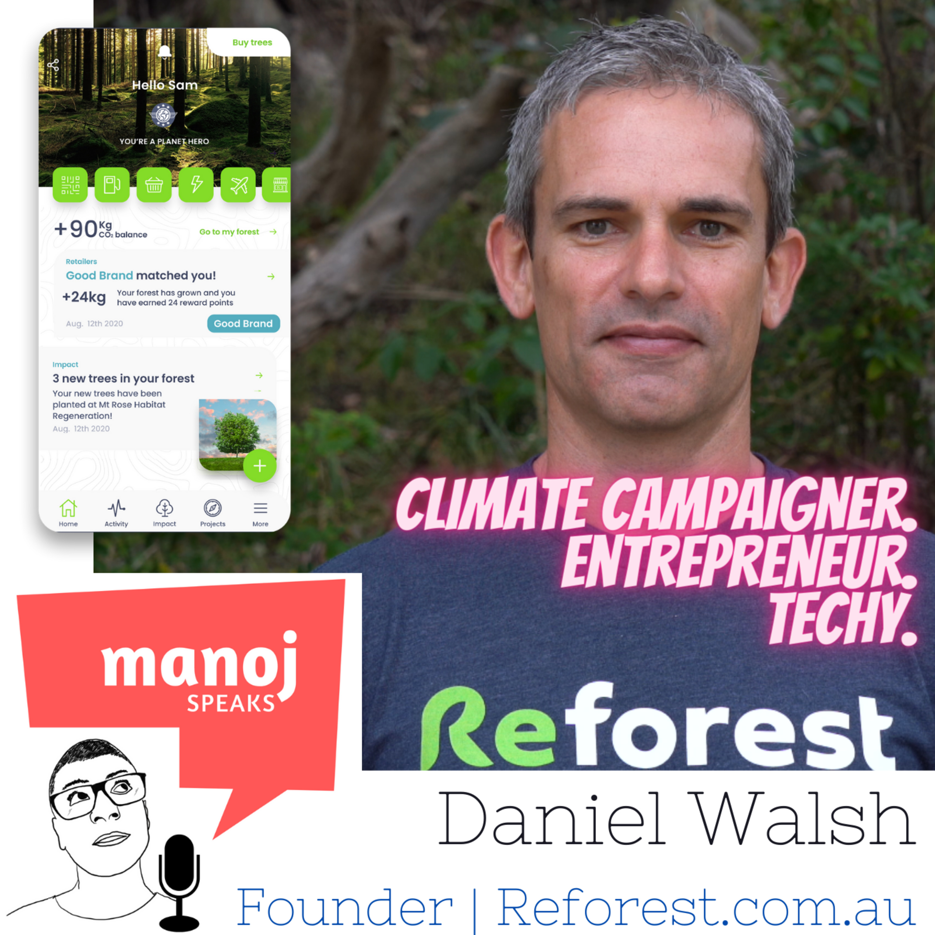 Loved this chat with Daniel Walsh, Founder of Reforest, an app that connects shoppers with businesses (and vice-versa), and together they aim to cut down CO2 emissions. Based in Australia, Daniel shares his passion for the environment and the excitement that follows the launch of his product.