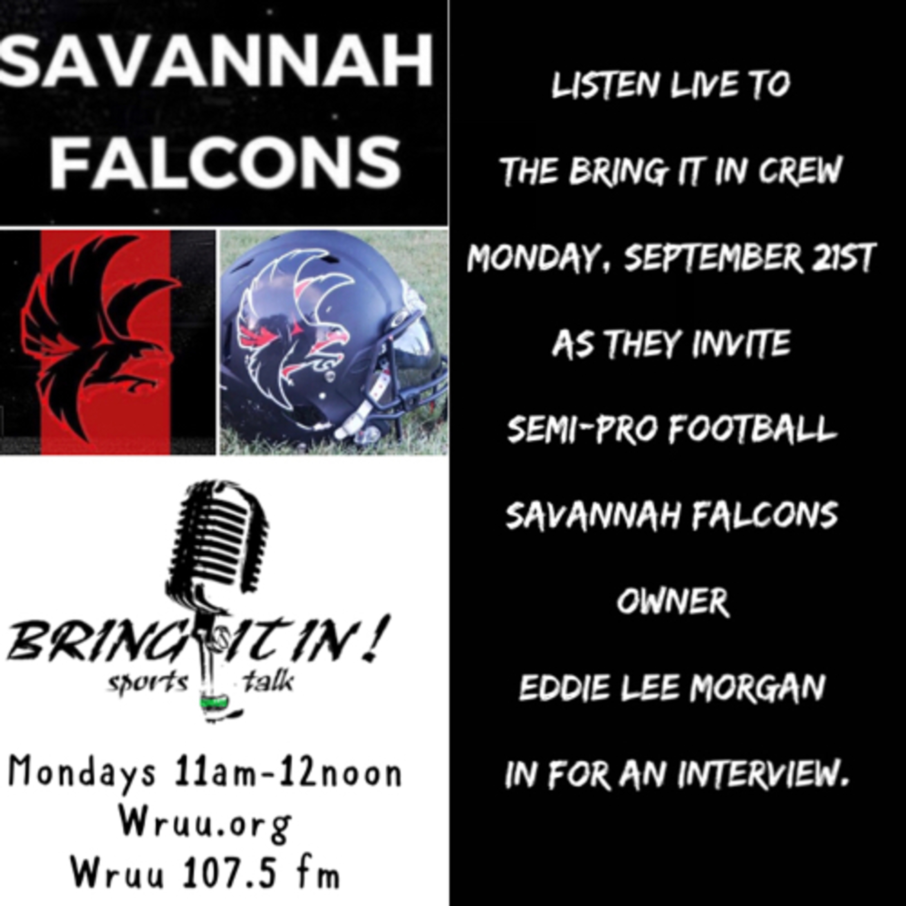 This week the Crew welcomes in the Owner/Head Coach of the Savannah Falcons to discuss what its like to run a semi-pro football team. They also talk week 2 of the NFL season can we say injuries. listen to picks and a parlay challenge at the end of the show!