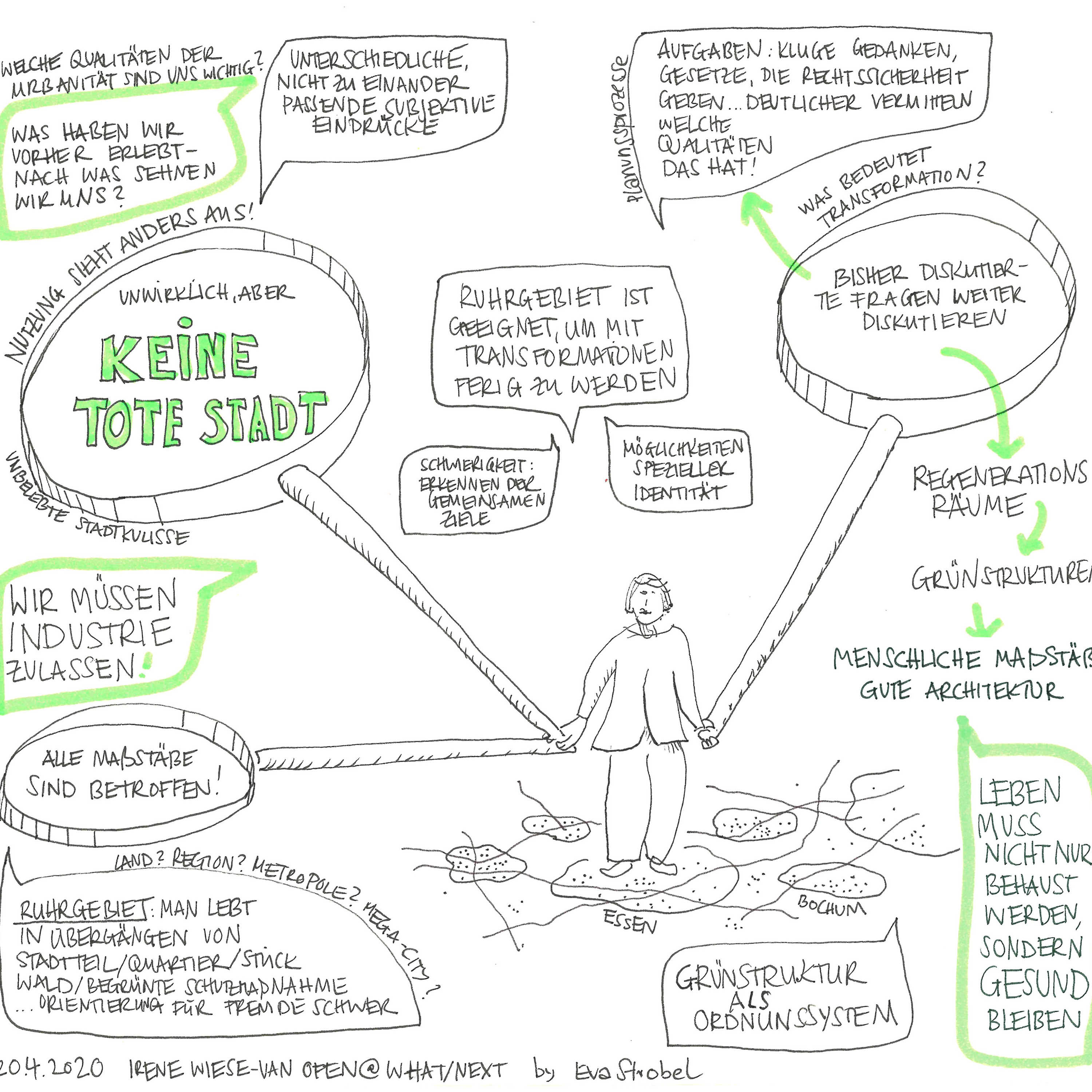 Das Ruhrgebiet ist ein spezifischer urbaner Kontext, in den letzten Jahrzehnten von tiefgreifenden Transformationsprozessen geprägt. Um den durch das Corona-Virus ausgelösten Wandel dort zu beobachten, sprach das Team von What/Next mit Dr.-Ing. Irene Wiese -v.Ofen, Architektin und Beigeordnete a.D. für Planung, Bau und Boden der Stadt Essen. Sie portraitiert den Raum und die Menschen des Ruhrgebiets, stellt planungsrelevante Zukunftsthemen heraus und plädiert dafür, Planung zwischen Verbindlichkeit und Phantasie und Offenheit für die Zukunft neu auszutarieren.