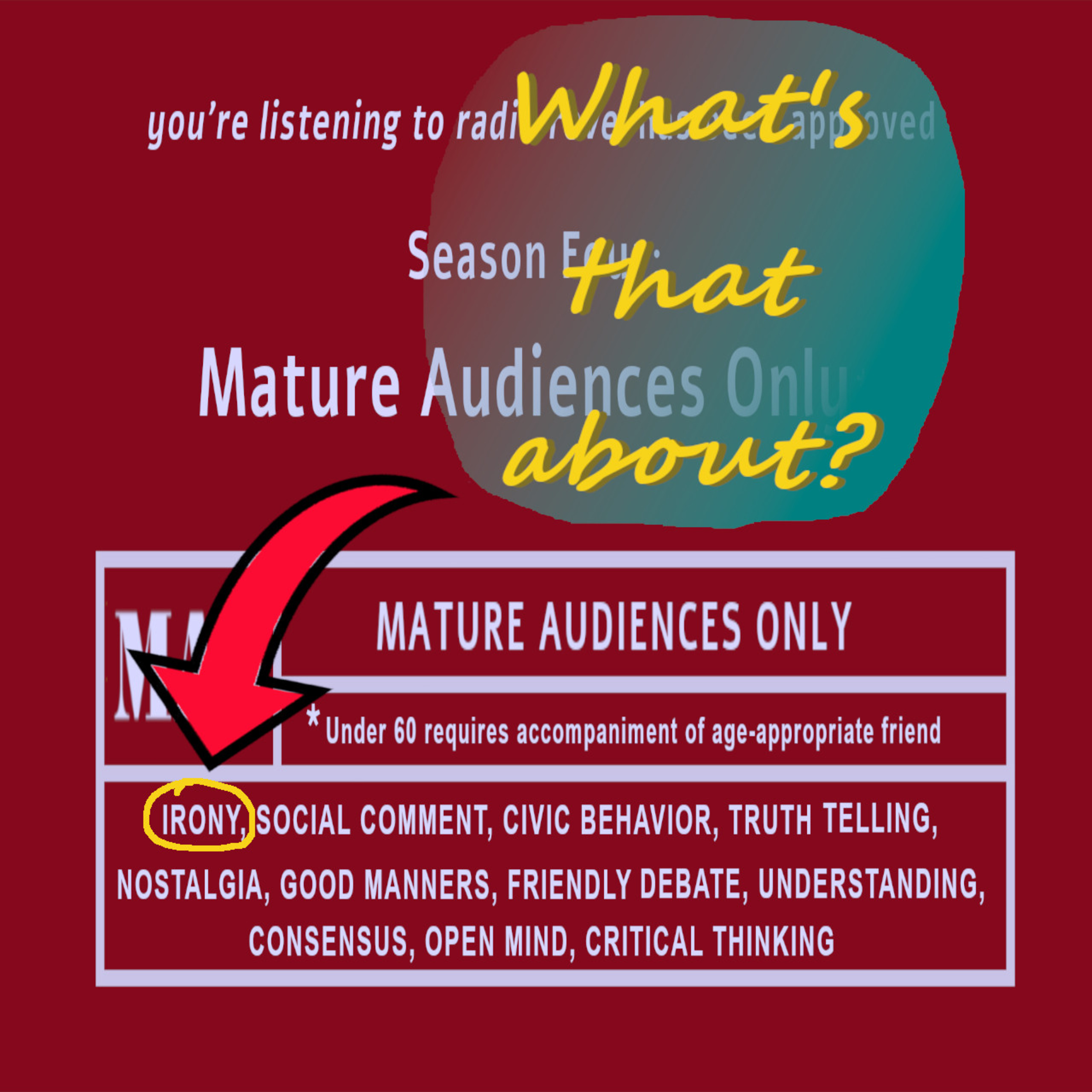 The first thing I promised to you listeners in this new season of you're listening to radio revel, in the series called Mature audiences only was "irony". Something we more mature folk should be pretty familiar with and actually pretty good at.