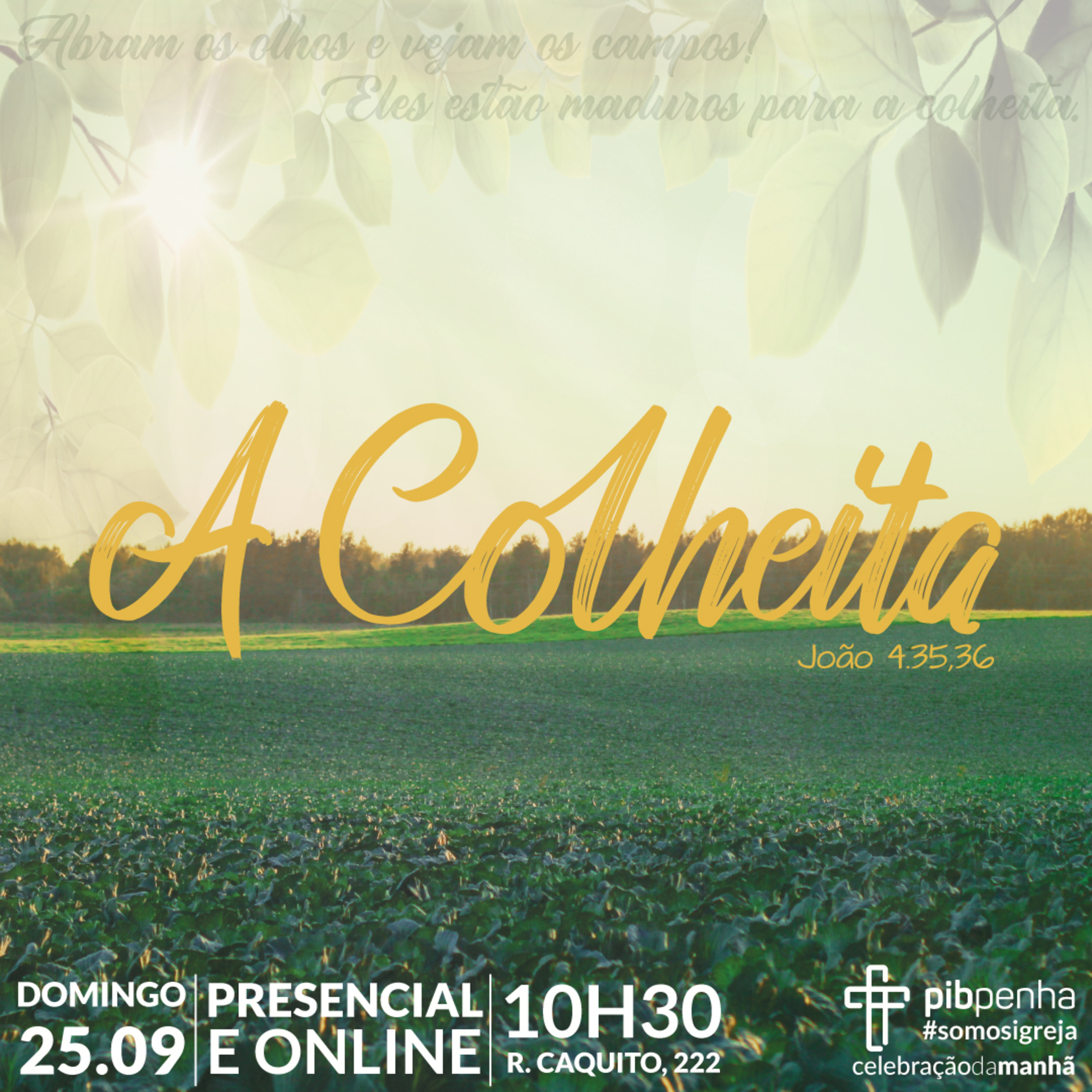 Mensagem da Celebração da Manhã de 25.09.2022. Texto base da mensagem: João 4.35,36 Pr. Hermógenes Nascimento