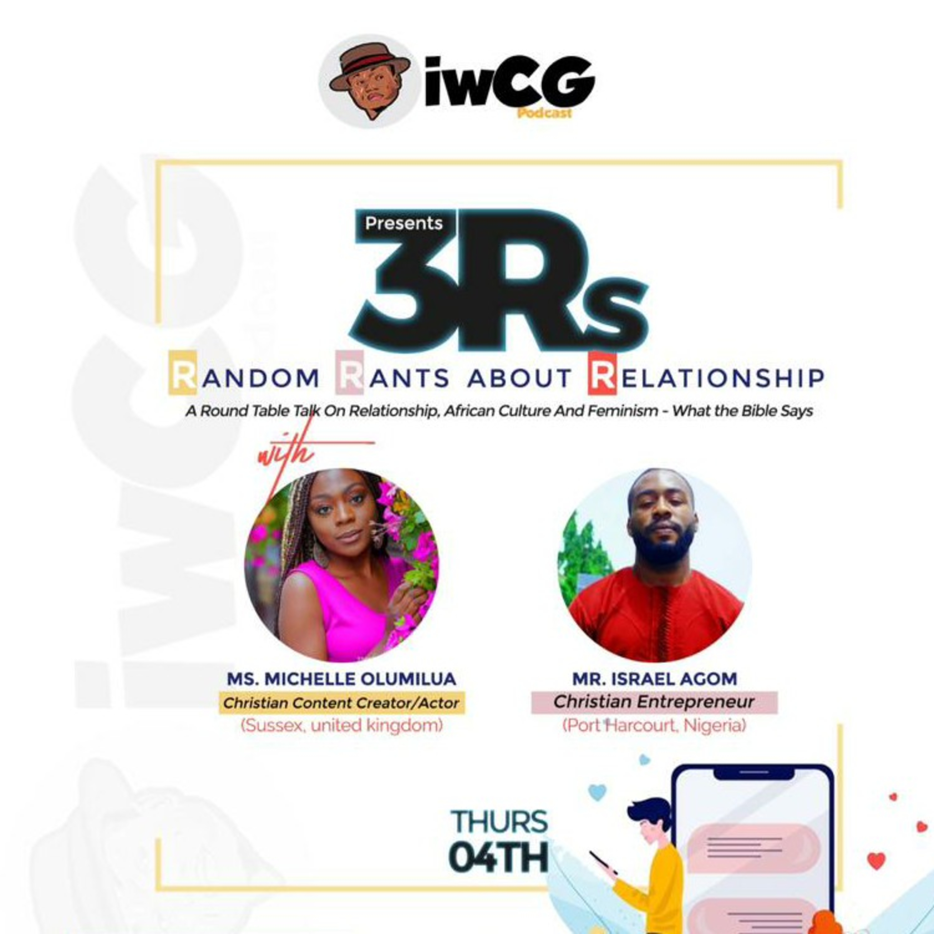 This week, ChristosGee sits with Israel Agom and Michelle Olumilua discussing Feminism, Manhood according to the Bible and Effect of African Culture on Dating. We concluded that the Bible still provides the best template for relationship and if we, as young adults played by the Bible principles we won't suffer unnecessary heartbreak and hurt